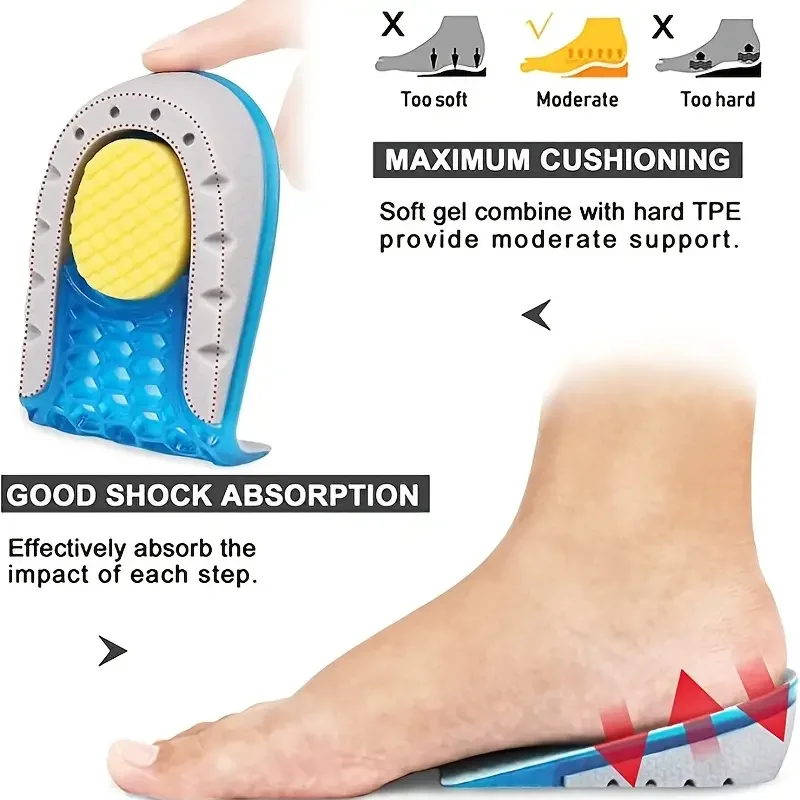 1pair Gel Height Increase Insoles, Shock Absorption Heel Cushion Pads, Height Lift Shoes Inserts For Men & Women