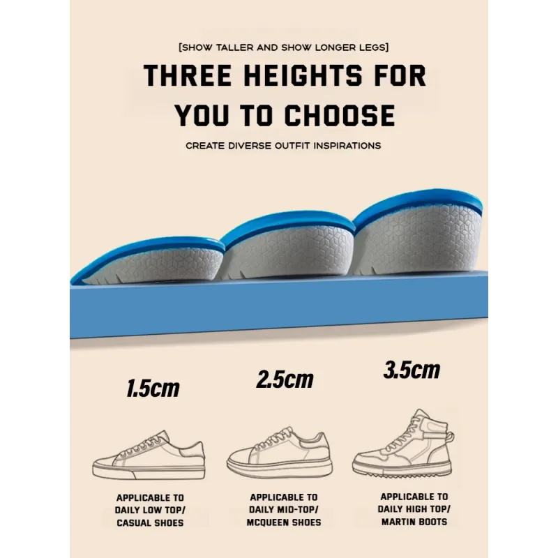 1Pair Gel Shoes Insole for Feet Silicone Invisible Height Increasing Insoles Non Slip Shoe Pads Men Shock Absorption Shoe Sole