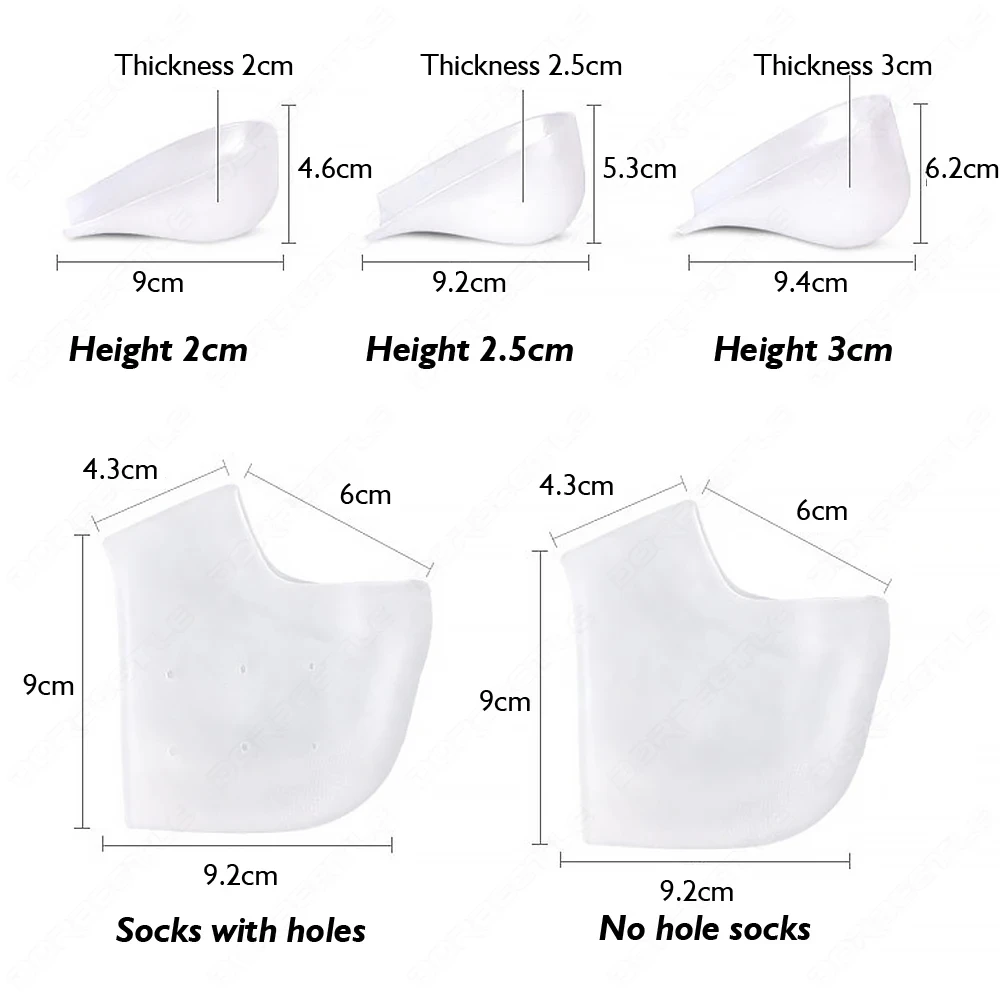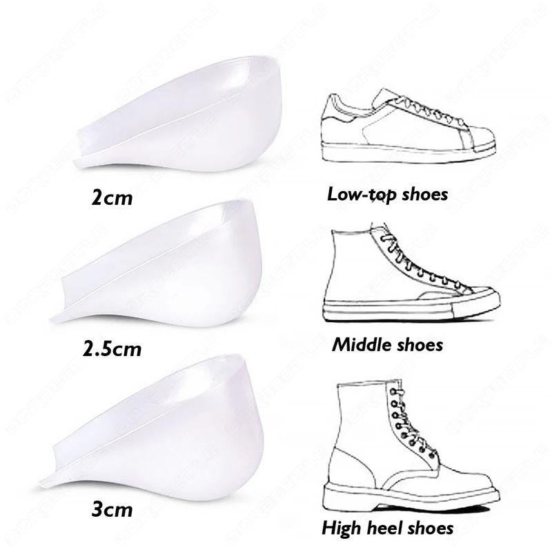 Each order contains 1 pair of silicone height increase insoles (left and right foot) in your selected lift height.