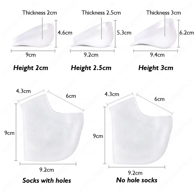1Pair Invisible Height Increased Insole Silicone Heel Socks for Women Men insoles 2-3cm insoles for plantar fasciitis shoe sole