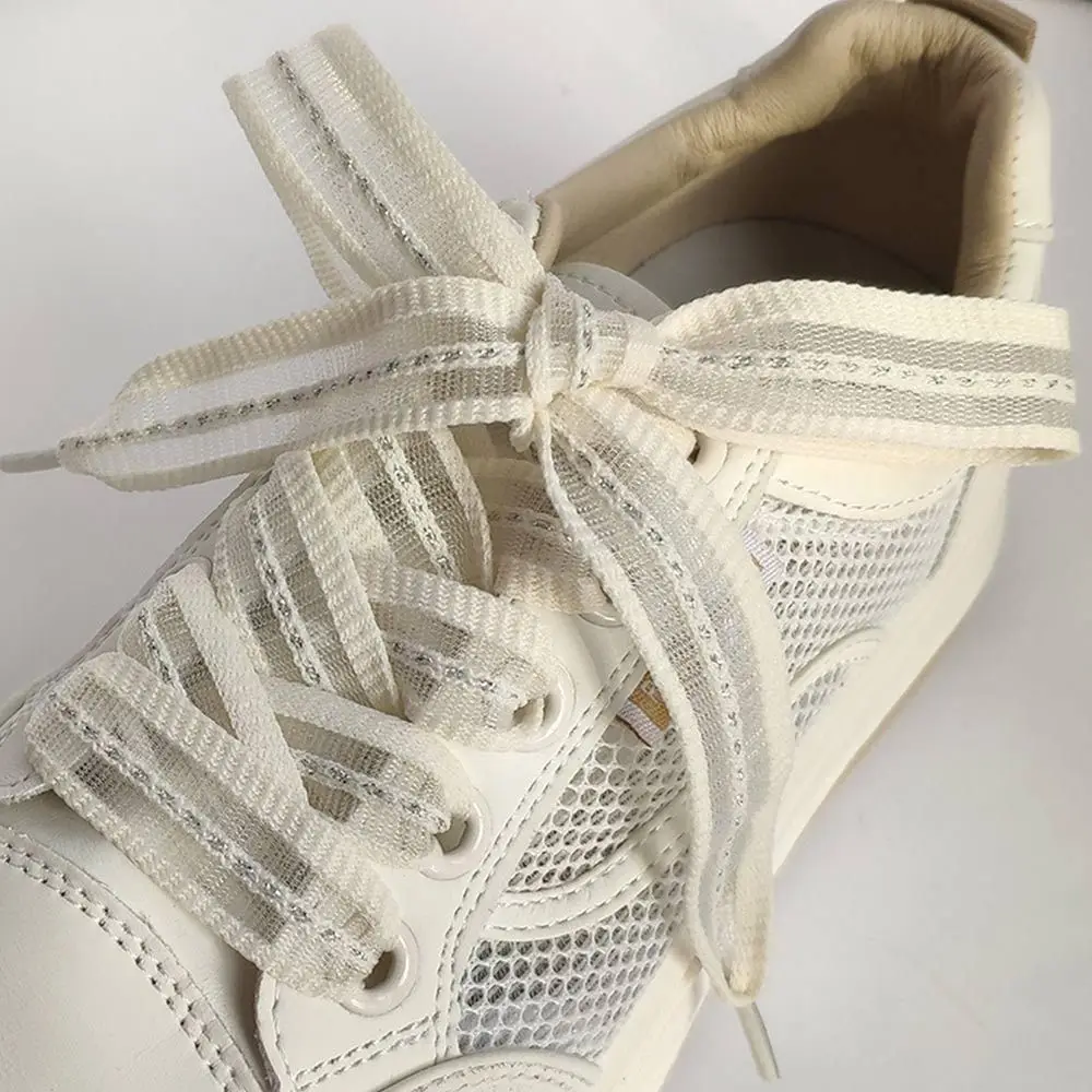 1pair New 2cm Bow Wide Rope Ultra-thin Solid Color Transparent Shoelaces Satin Silk Ribbon Bold Shoelaces