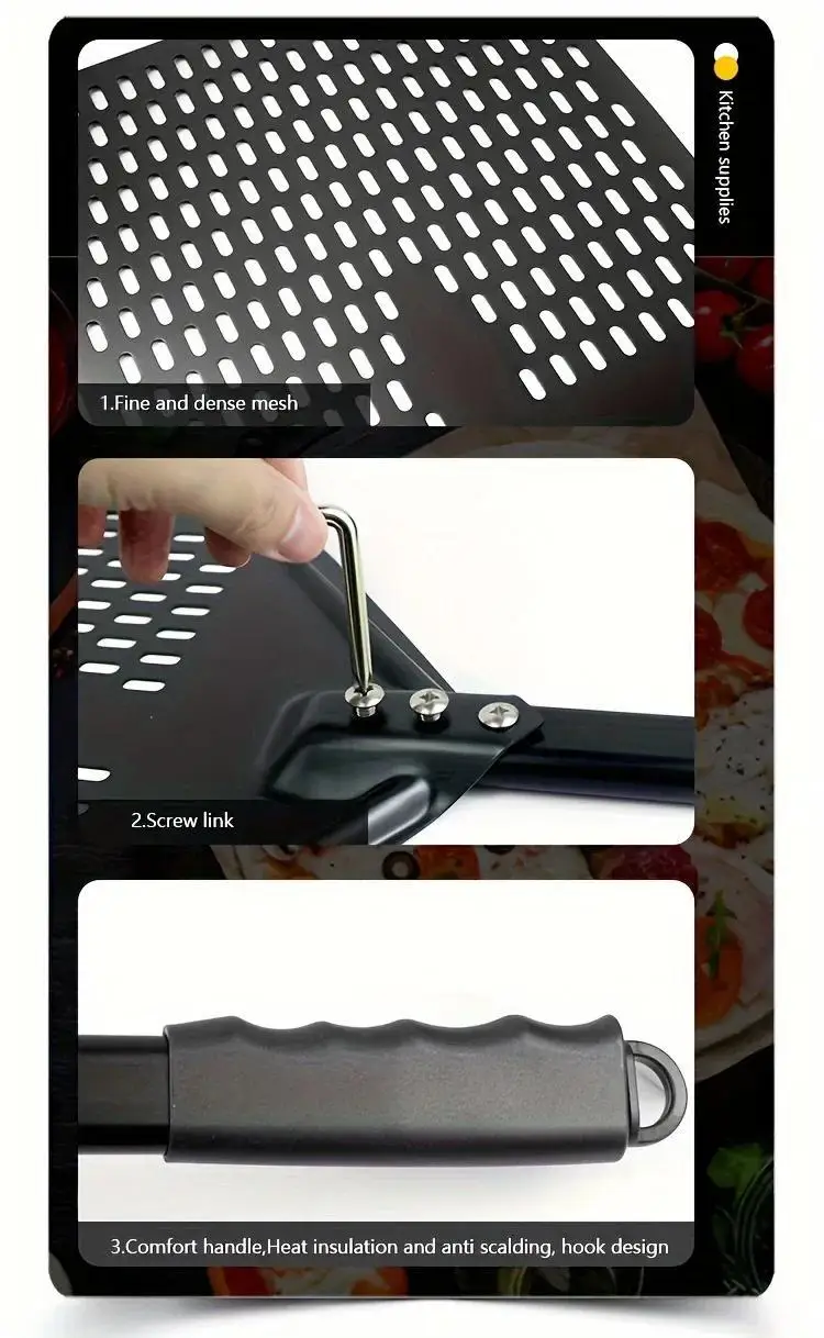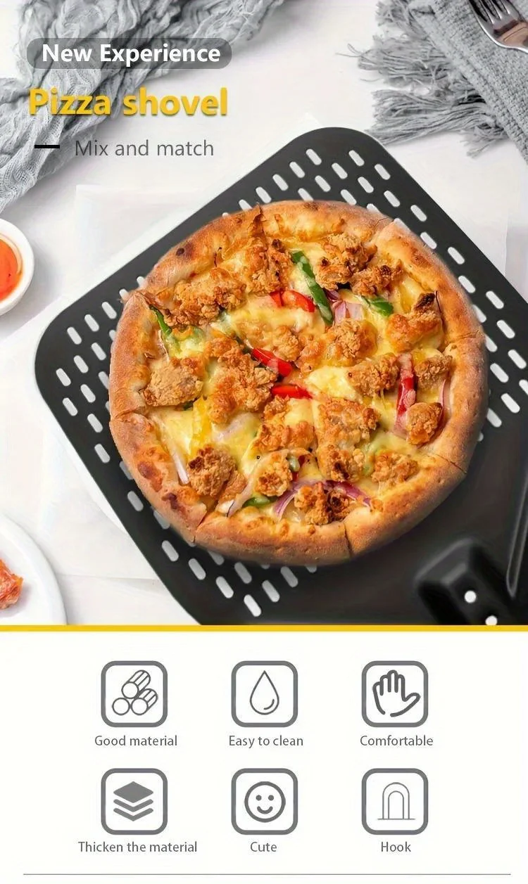 1Pc 12inches Perforated Pizza Peel, 30.4 X 35.56 Cm Rectangular Pizza Transfer Peel, Hard Anodized Aluminum Turning Pizza Paddle