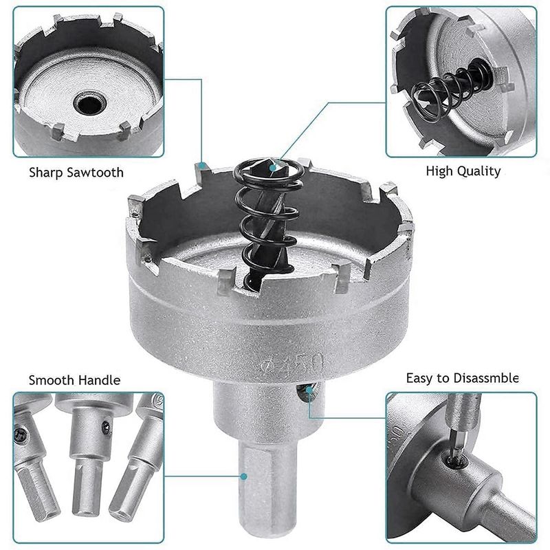 The carbide hole saw is widely used for drilling holes in soft metals, thin iron, copper, aluminium, alloys and plastics. It is not suitable for thick metals, hard metals, stainless steel, tiles, glass, concrete and stone.