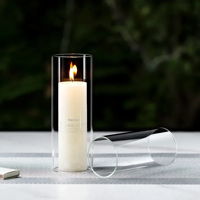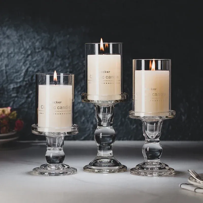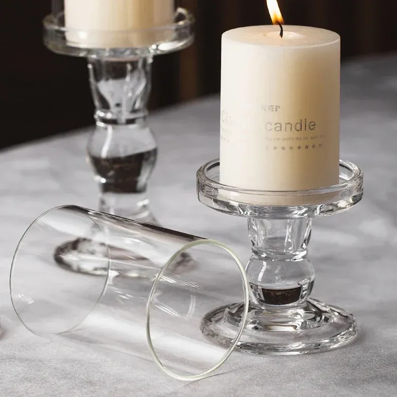 1pc 3.46 / 4.52 / 5.51inch Glass Candle Holders for Pillar Candle and Taper Candle Wedding Decoration Candlestick Set Home Decor