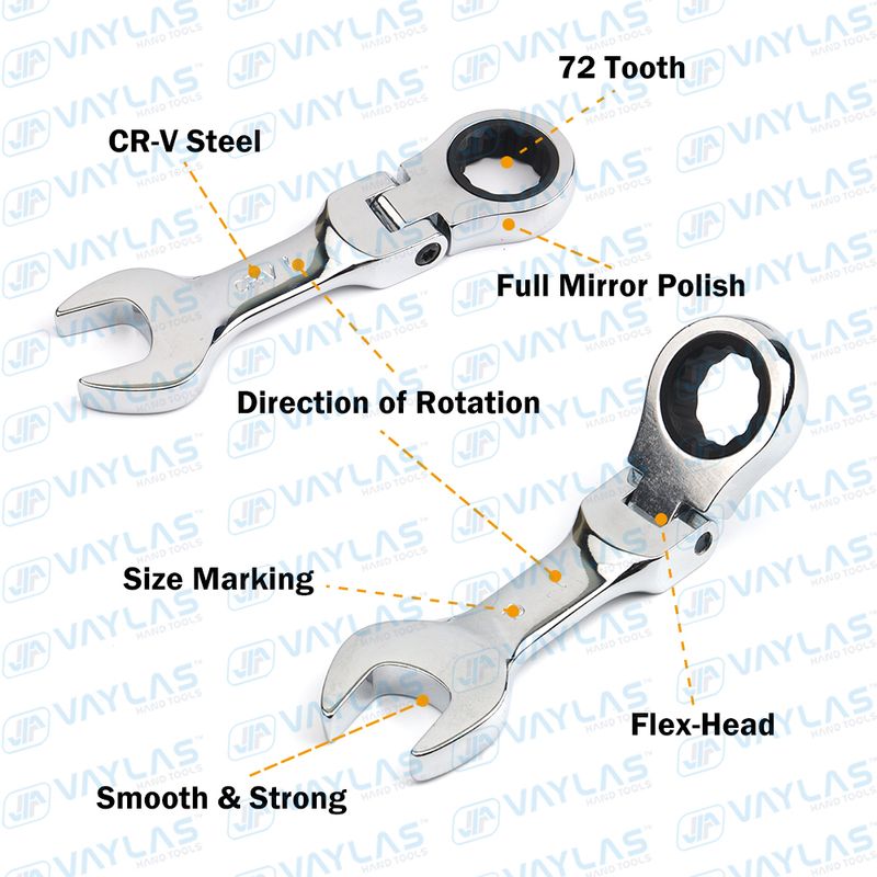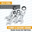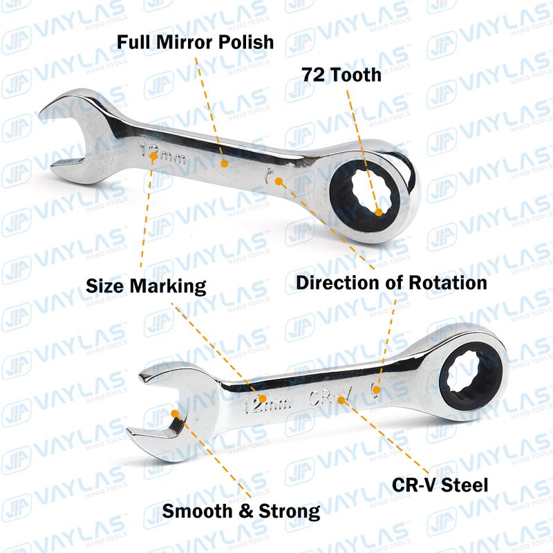 High-Quality Stubby Wrench : The stubby ratcheting wrench is forged from high-quality CR-V for excellent rust and corrosion resistance. The ratchet wheel is made of chrome vanadium steel,strong and durable.