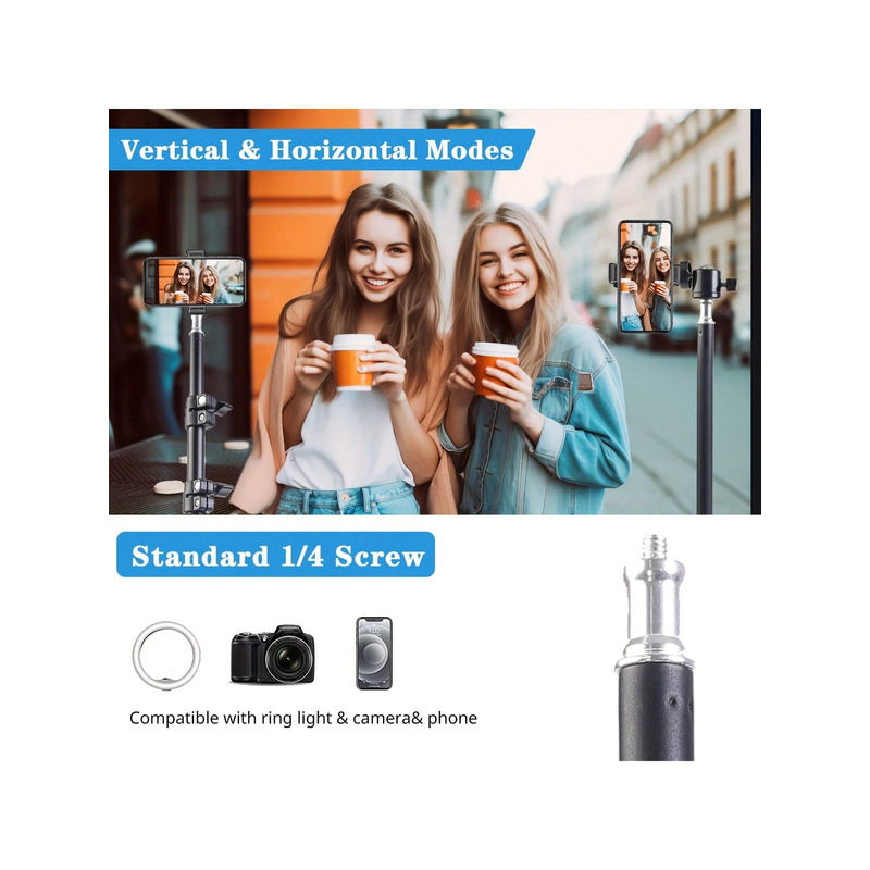 1pc 63-inch With Foldable Tripod & Phone Holder clip 160.02 Cm Multifunctional Tripod, Tripod For Phone And Camera