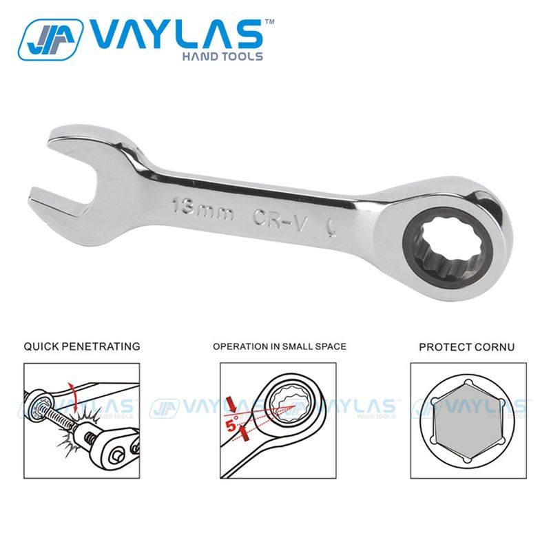 1pc 8-19mm Mini Ratchet Wrench Tool Ultra-short Key Stubby Ratcheting Combination Wrench Mirror Polish 72T Home Auto Car Repair