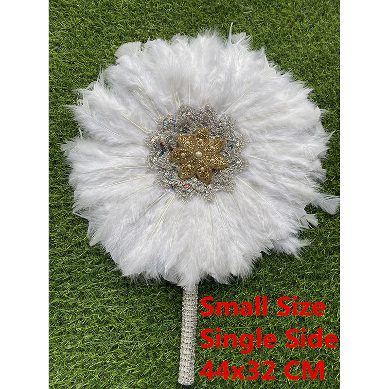 1pc Double-Side African Eventaille Mariage Fan White Turkey Feather Fan and Gold Handle Nigerian Dance Bridal Fans for Wedding