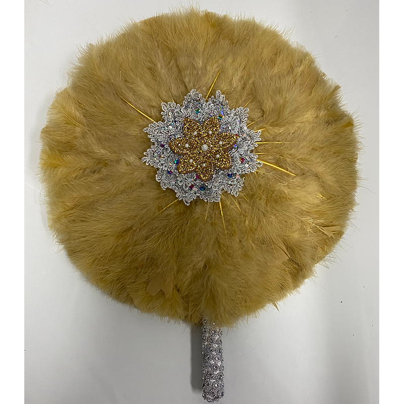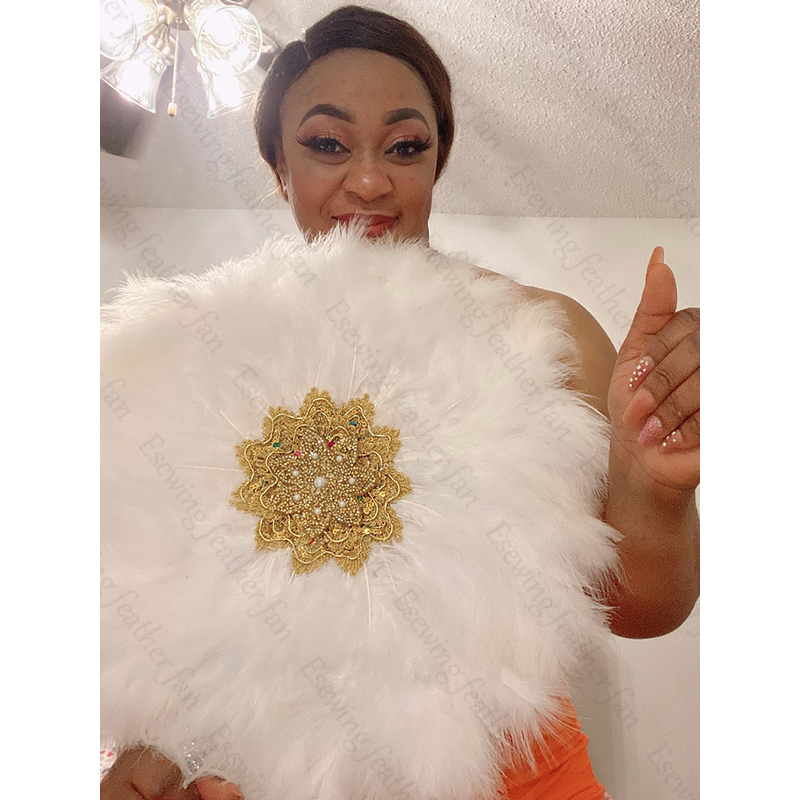 1pc African Eventaille Mariage Fan White Turkey Feather Fan and Gold Handle Nigerian Dance Bridal Fans for Wedding