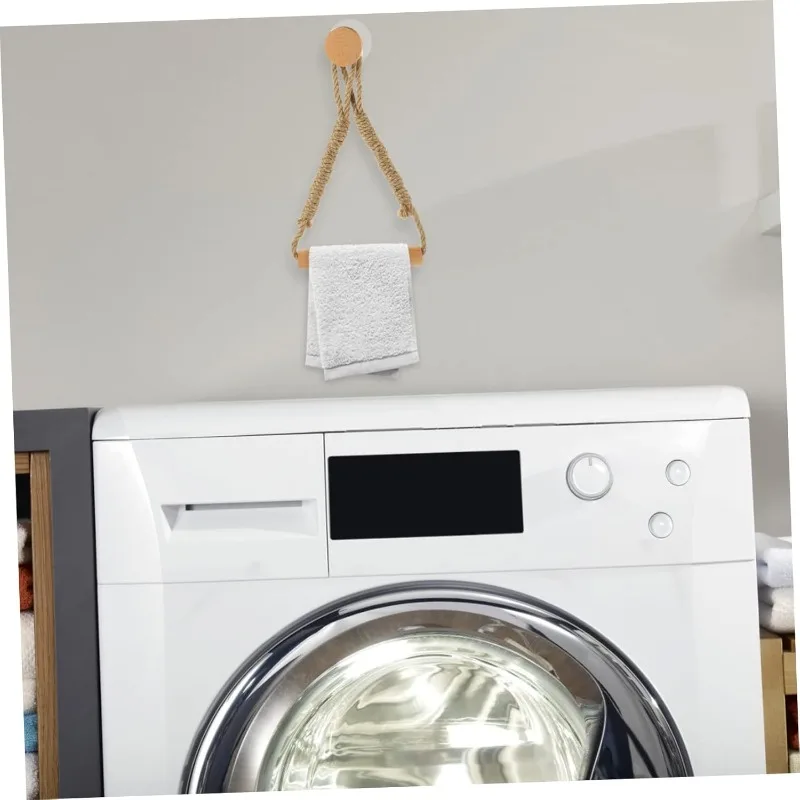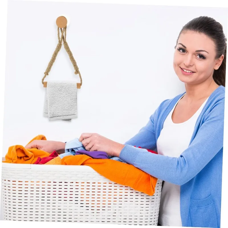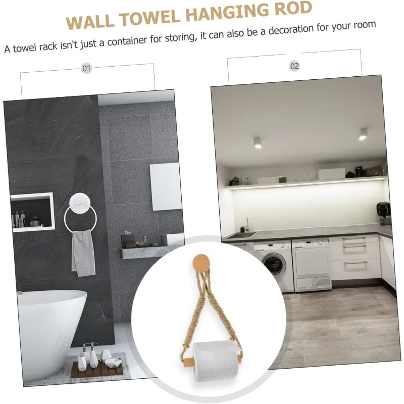 1PC Bathroom Tissue Dispenser Toilet Paper Storage Wall-Mounted Rustic Hemp Rope and Wooden Stick Toilet Paper Holder Decorative