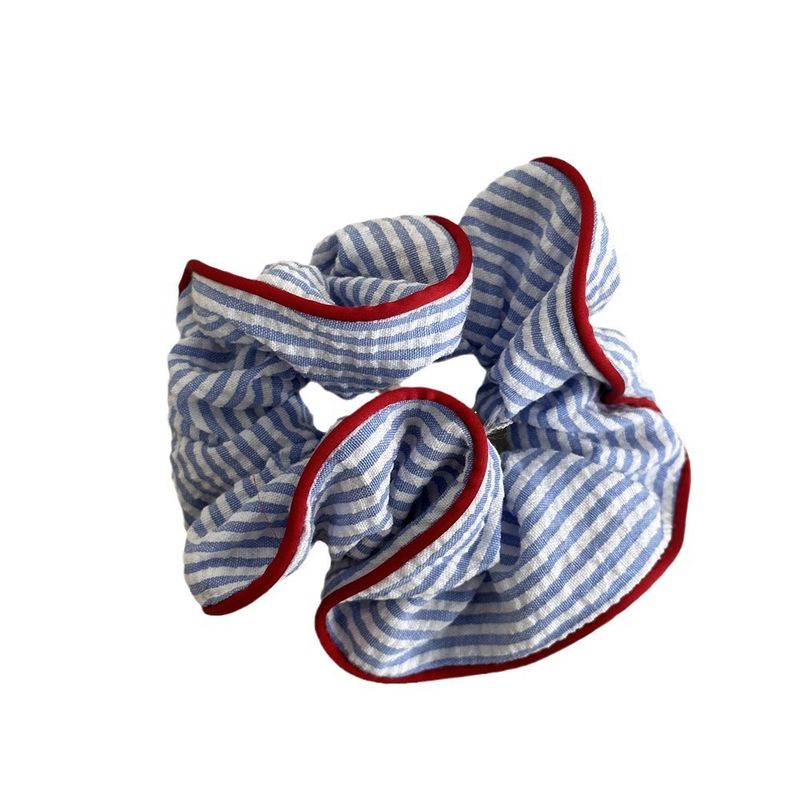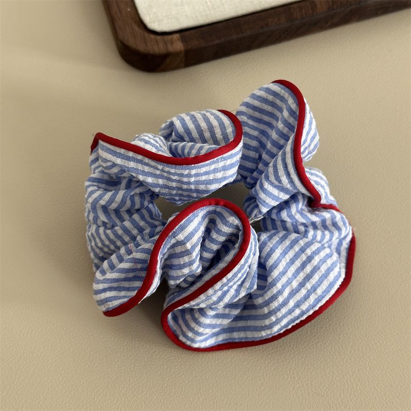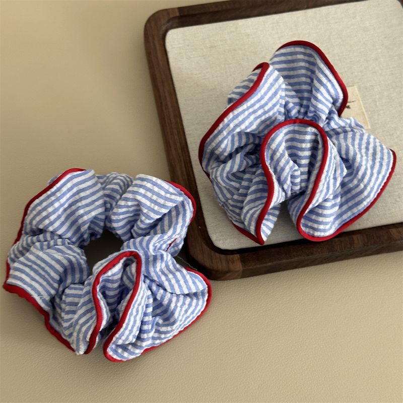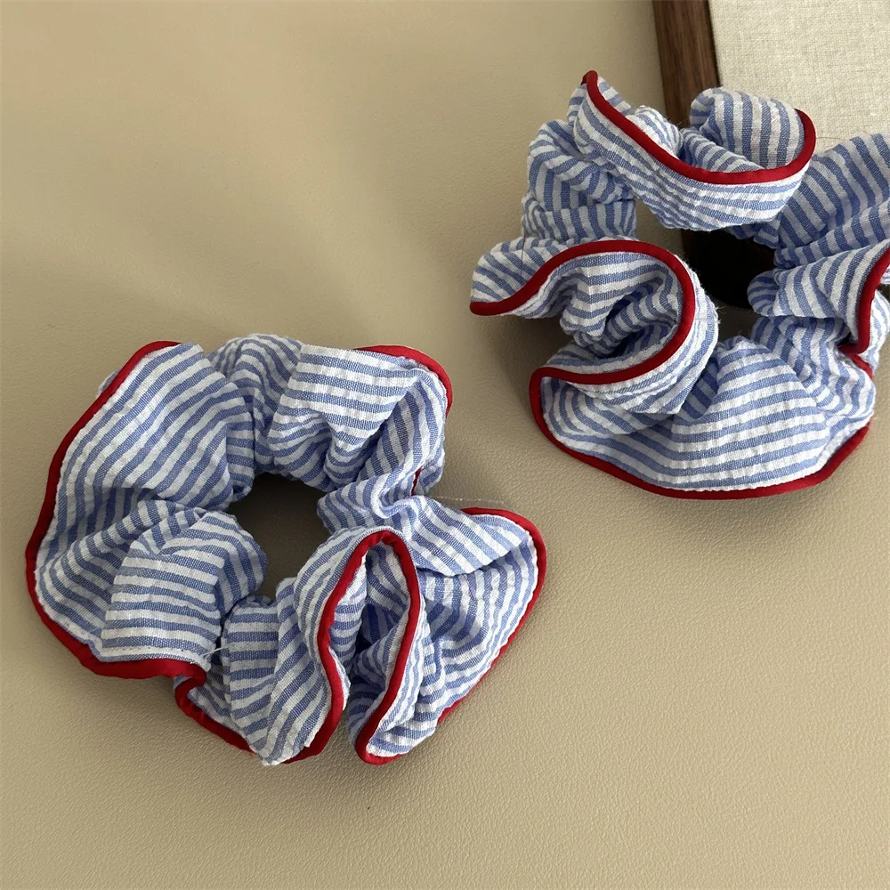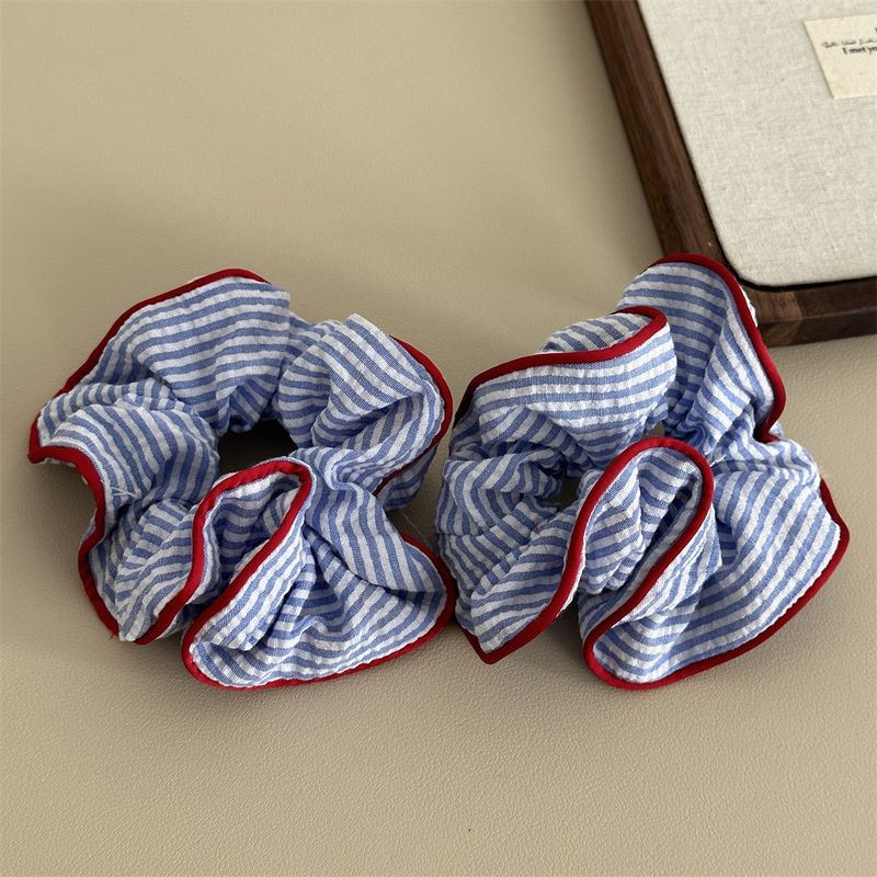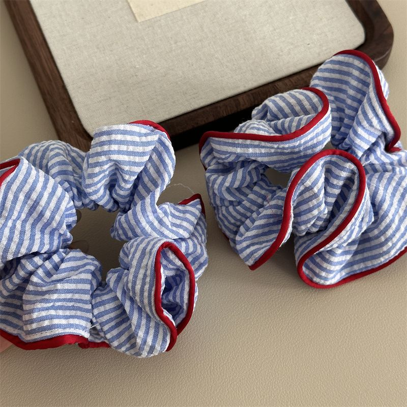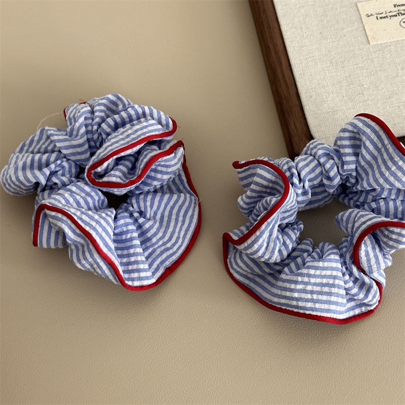 1PC Blue And White Striped Clashing Color Large Intestine Hair Ring Fresh Ponytail Hair Ring Hair Rope Sweet Marble Head Plate H