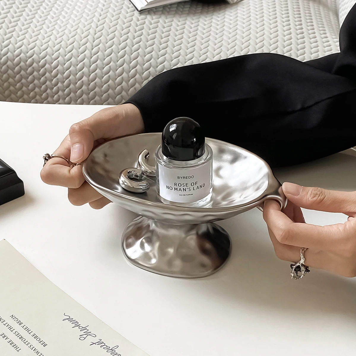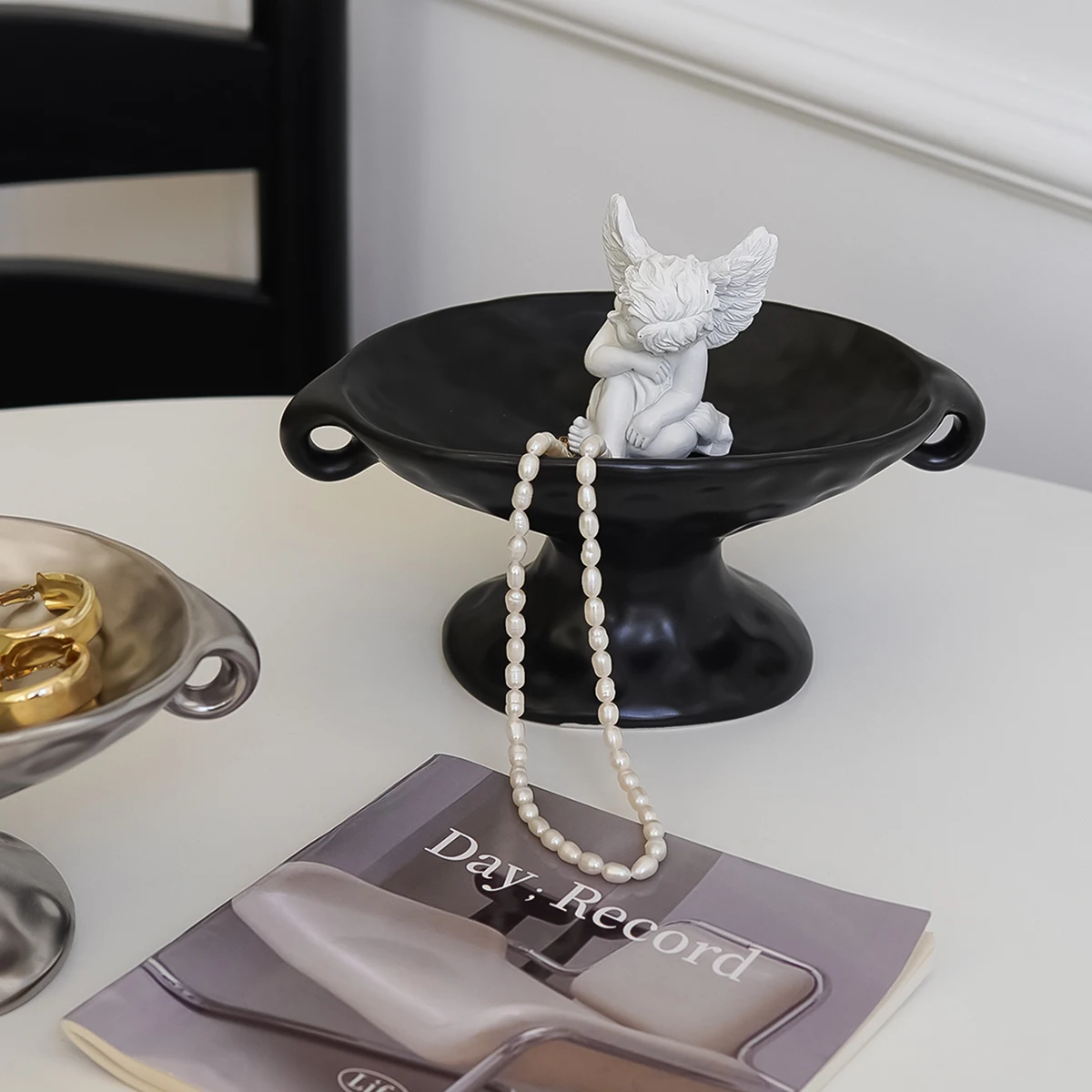 1Pc Ceramic Double-Eared Soap Dish, Vintage Double-Eared Soap Dish with High Tray, Suitable for Home Decoration, Bathroom Soap Storage, Kitchen Storage, Entryway Jewelry Storage, Gift Giving