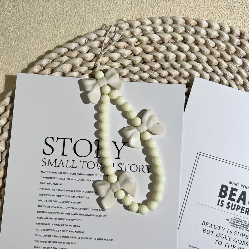 1pc Charm Bowknot Mobile Phone Chains For Women Girls Telephone Charm Strap Pink Black Acrylic Pearl Beaded Lanyard Jewelry Gift