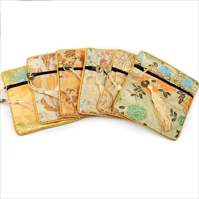 1pc Chinese Brocade Zipper Jewelry Bag Gift Pouch Square with Flower Pattern for Gift Packaging Shopping Storage Pouche