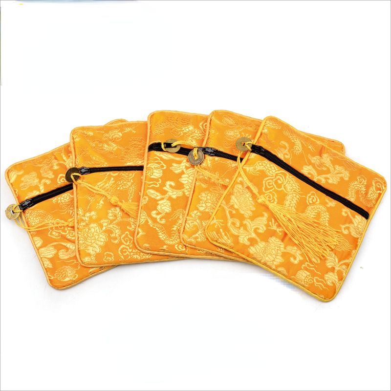1pc Chinese Brocade Zipper Jewelry Bag Gift Pouch Square with Flower Pattern for Gift Packaging Shopping Storage Pouche
