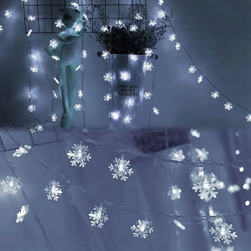 1Pc Christmas Lights Snowflake String Light Led Battery Operated Waterproof Snowflake Fairy Lights For Bedroom Garden Decoration