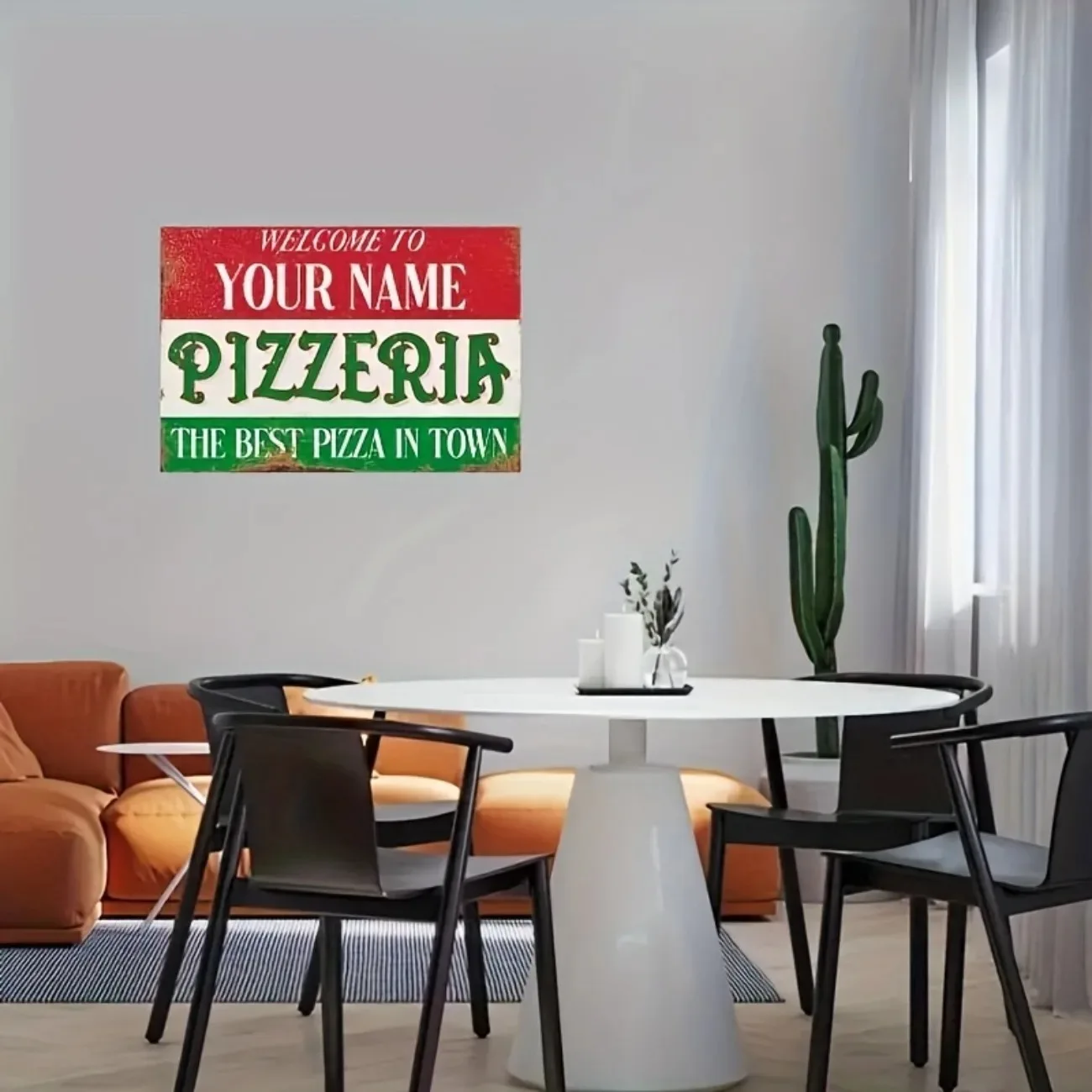 1pc Custom Text Pizza Shop Metal Sign - Personalized | Vintage Kitchen/Cafe Decorative Plaque (Decorative Only)
