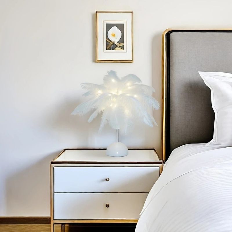 1PC desktop feather small table lamp, battery powered (excluding battery), suitable for bedroom desk headboard decoration