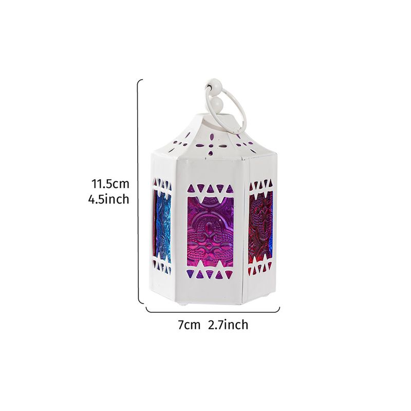 1PC, European retro ironwork, colored windproof glass, hexagonal hollowed-out candlestick lamp