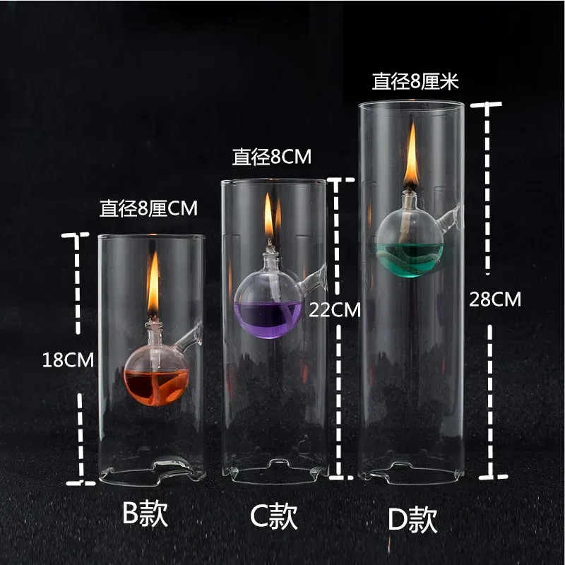 Size: Diameter by 8cm 3.2inch and High by 18cm 7 Inch Volume: about 50-60 ml Material: borosilicate glass Color: Clear glass,Be creative. There's enough room below the oil candle to place shells, berries, greens, flowers or anything else you'd like.