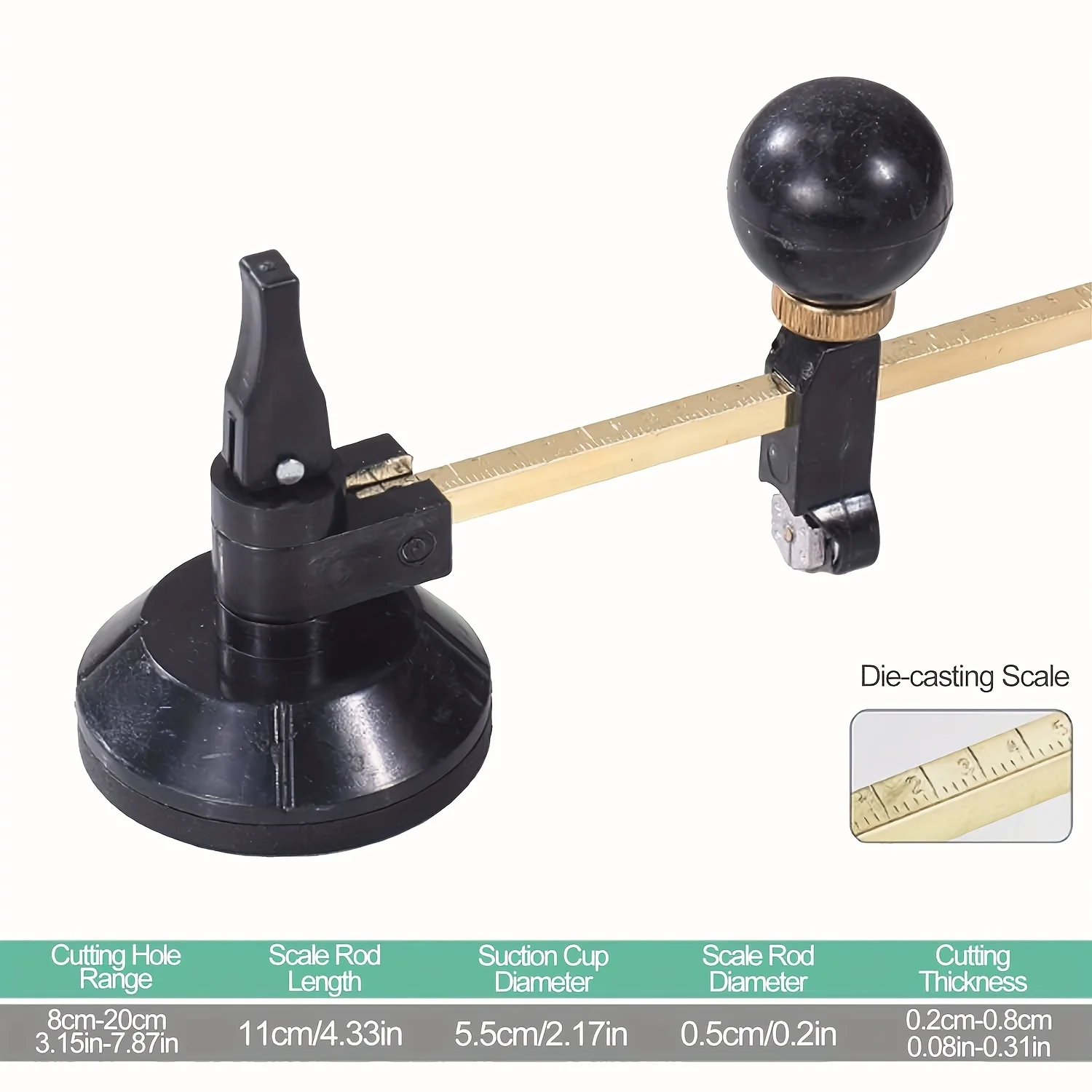 1pc Glass Cutting Tools Wheel adjustable Circular Glass Cutter with Suction Cup - Metal Manual Compass Type Glass Cutting Tool