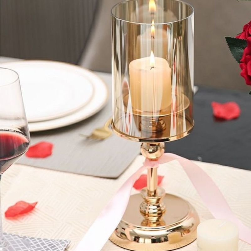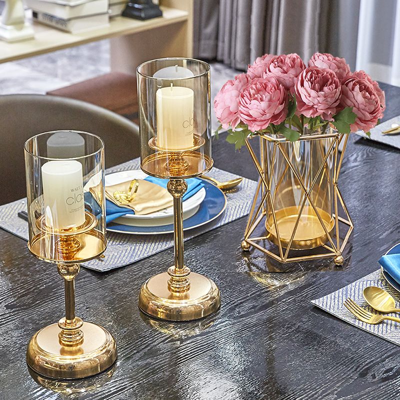 1pc Golden Glass Candle Holders for Pillar Candle Candlestick for Dining Coffee Table Wedding Events Parties Home Decor