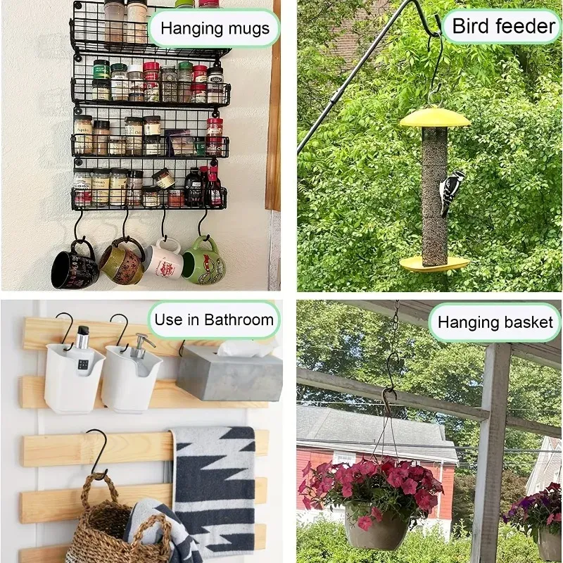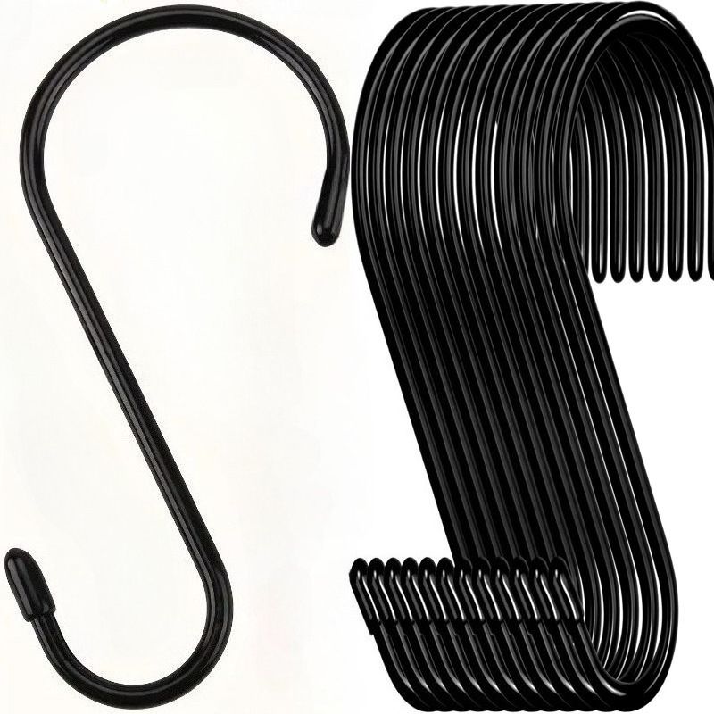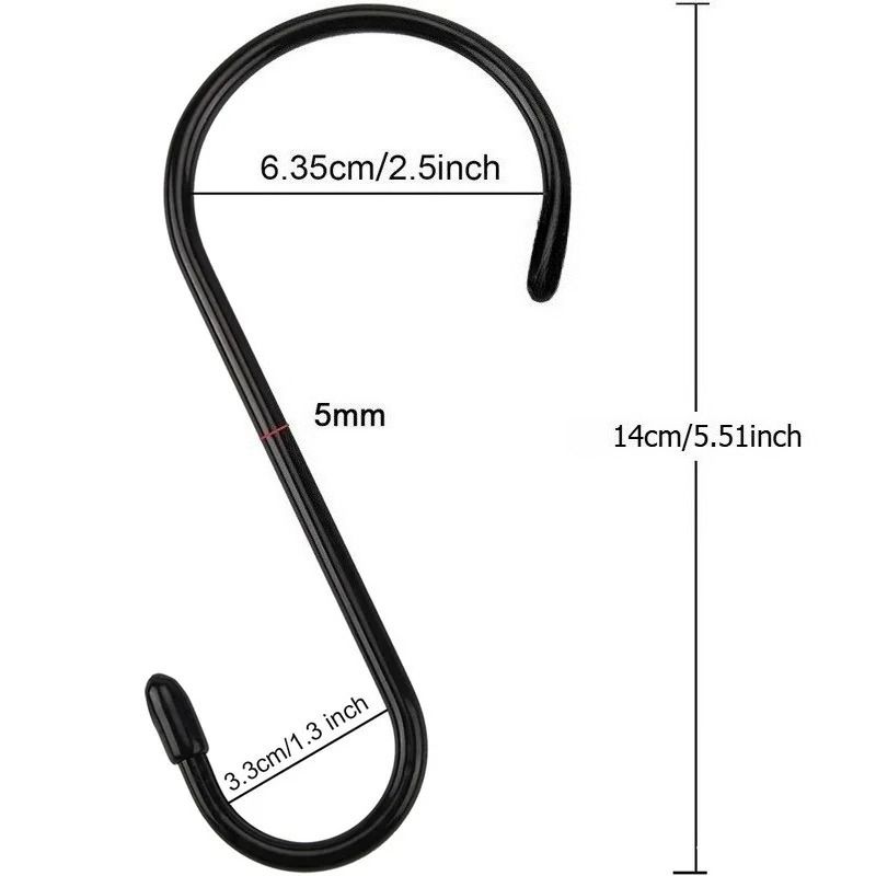 Easy to Use: Not require to use tools,nails, screws, or adhesives, black rubber coated hooks are easy to hang on existing objects.large vinyl coated s hooks can hang lots of item to help you save more space in your home.