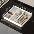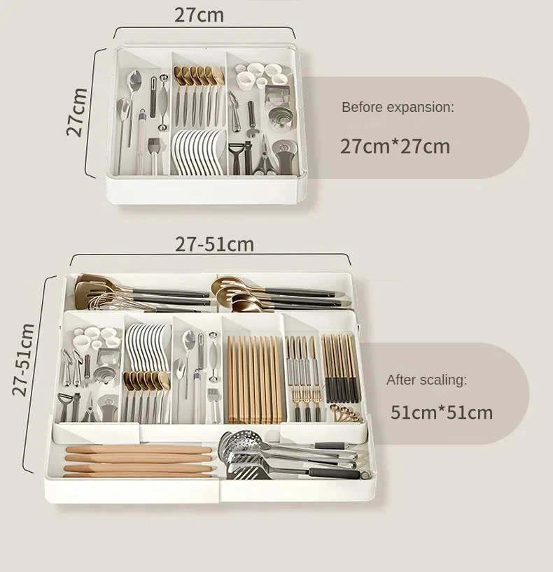 1. The retractable drawer and partitioned storage box can hold tableware, knives, forks, spoons, chopsticks, ornaments and stationery