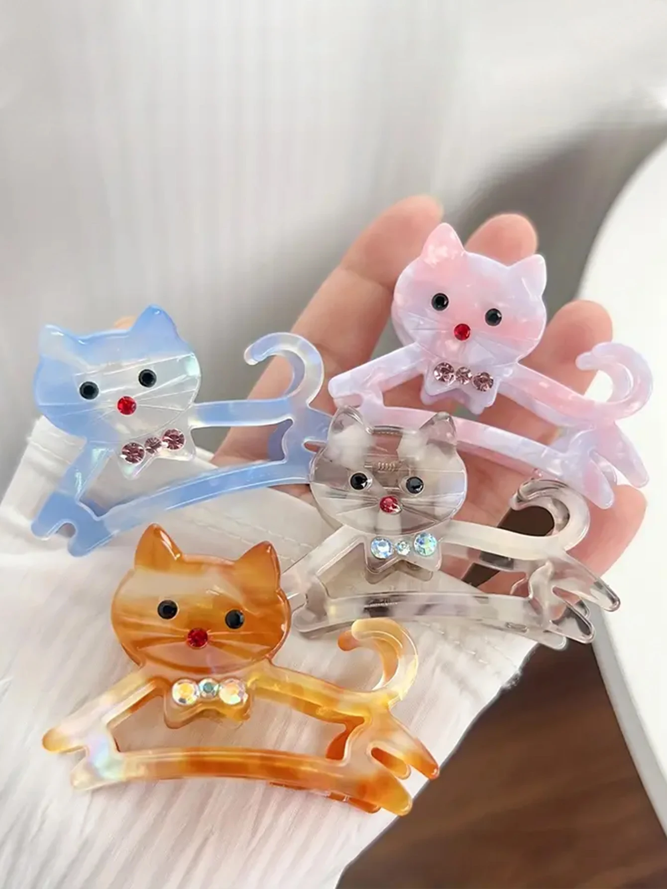1pc Korean cute Kitten Point drill acetic acid grab girl sweet side medium half a ponytail nappy little hair clip