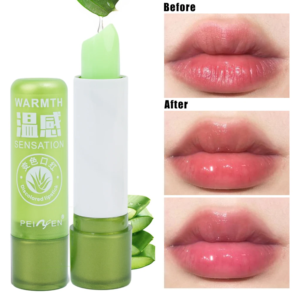 1PC Moisture Lip Balm Long-Lasting Natural Aloe Vera Lipstick Color Mood Changing Long Lasting Moisturizing Lipstick Lips Makeup
