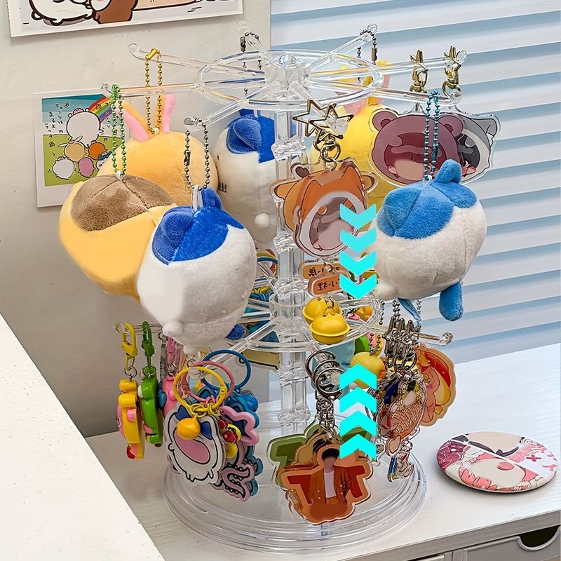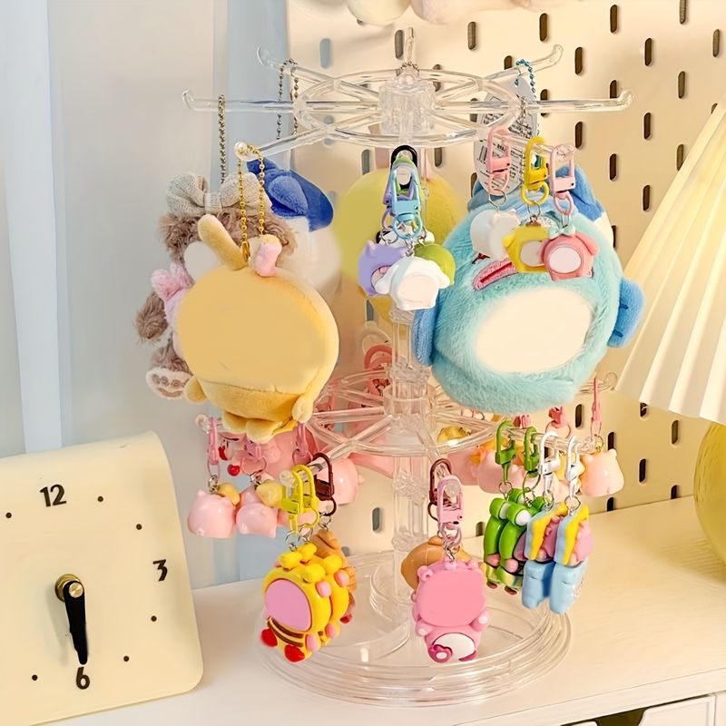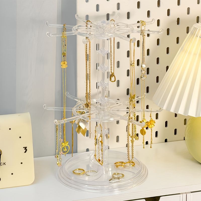 1pc Multifunctional Double-Layer Rotatable, Detachable and Adjustable Jewelry Stand - Jewelry, Keychain Display Rack. A Perfect