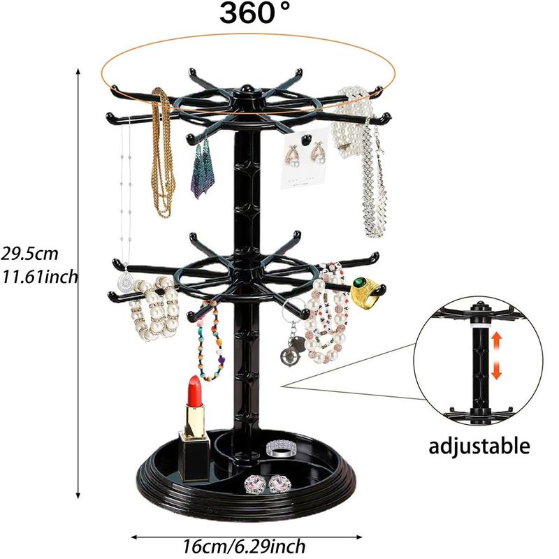 The double-layer rotatable design allows for easy viewing and access to jewelry, enhancing the shopping experience.