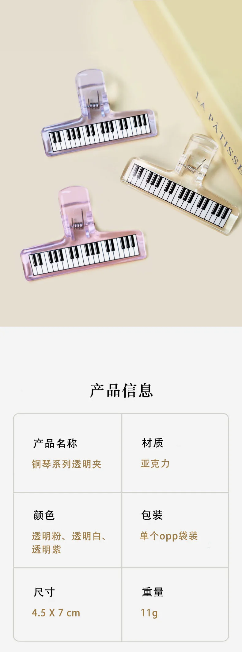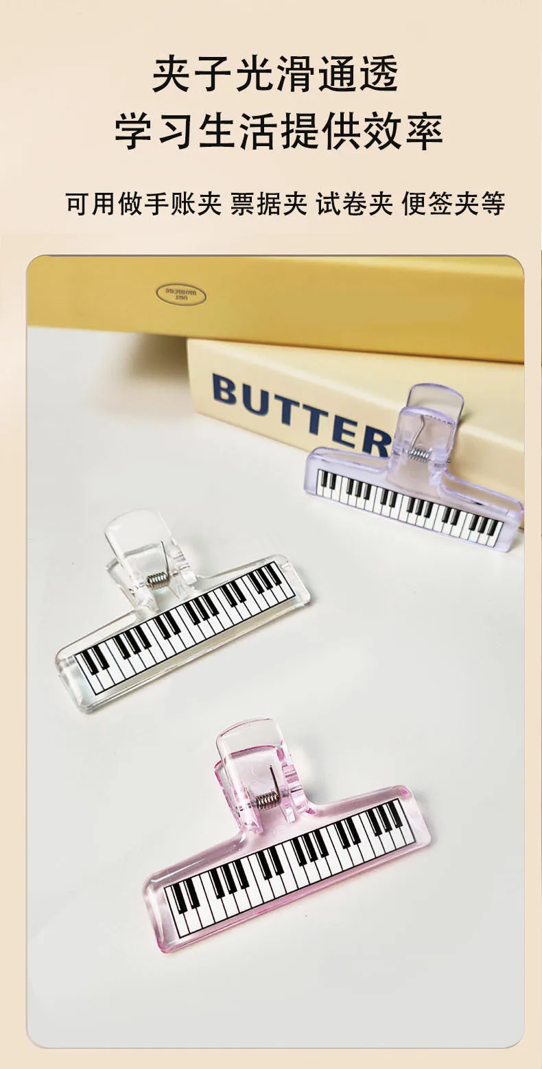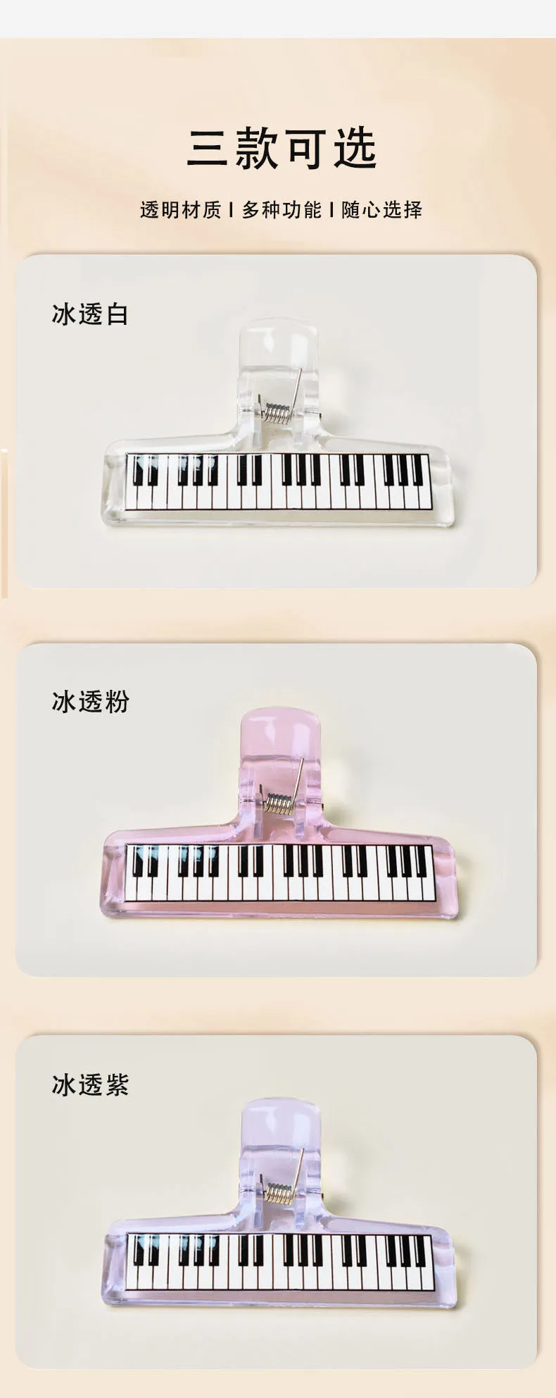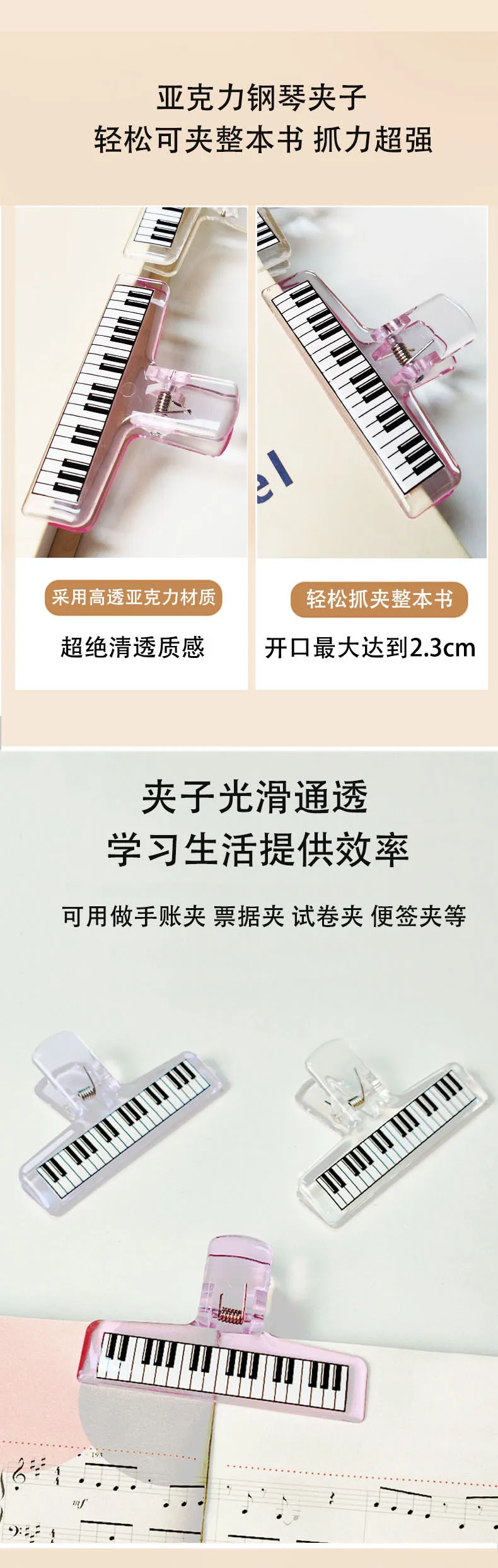 1Pc Music Style Piano Pattern Transparent Acrylic Clip Piano Score Fixed Binder Clamp Office Folder Student Test Paper Organizer