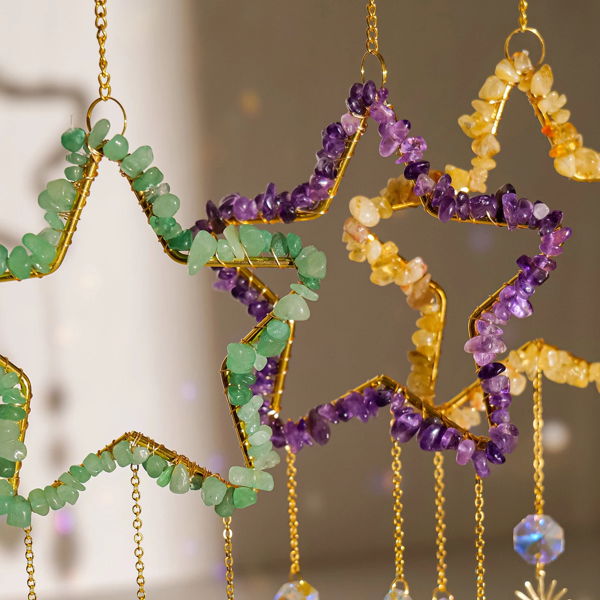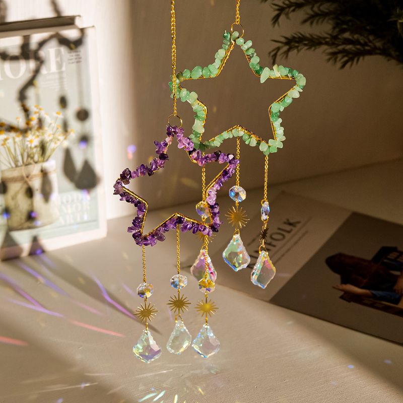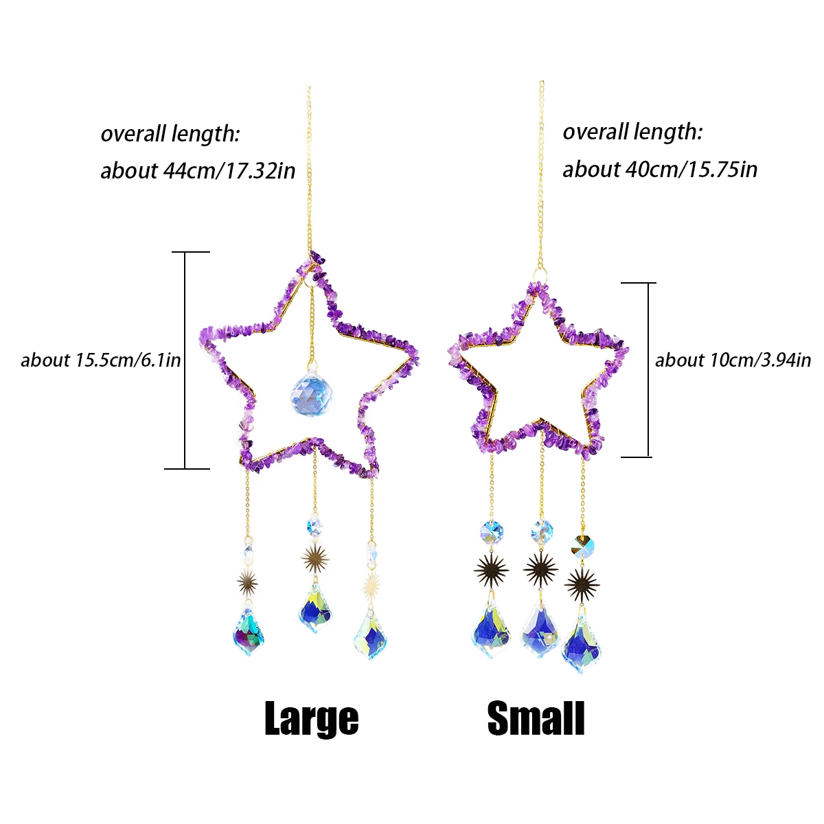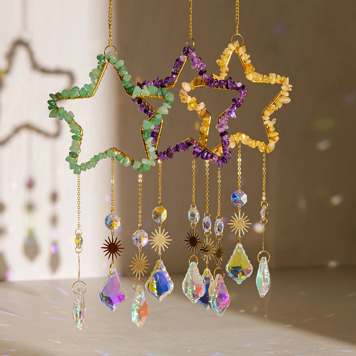 1PC Natural Healing Crystal Pendant Crystal Gravels Five-pointe Star Catcher Reiki Gemstone For Home Garden Wedding Garden