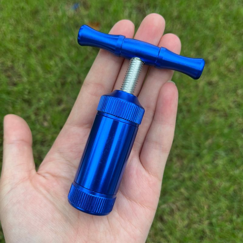 Good Green and Blue Quality 1pc Aluminum Alloy T Shape Press Tool For Spice, Garlic, Pepper, Salt, Can Be Rotated Squeezed To Store Tobacco Leaves Pocket