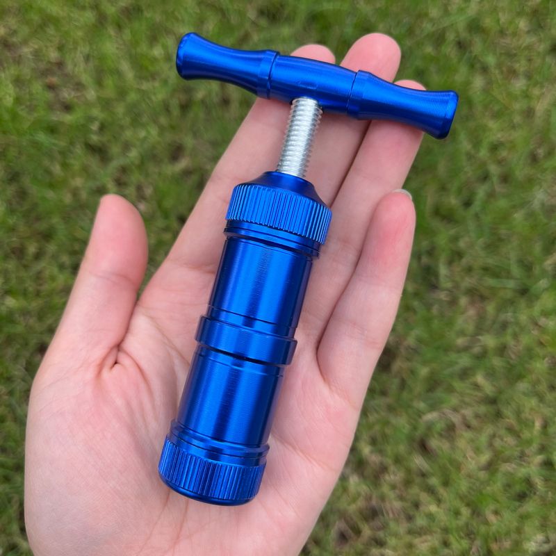 Good Green and Blue Quality 1pc Aluminum Alloy T Shape Press Tool For Spice, Garlic, Pepper, Salt, Can Be Rotated Squeezed To Store Tobacco Leaves Pocket