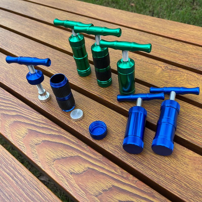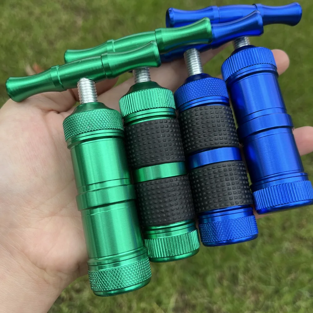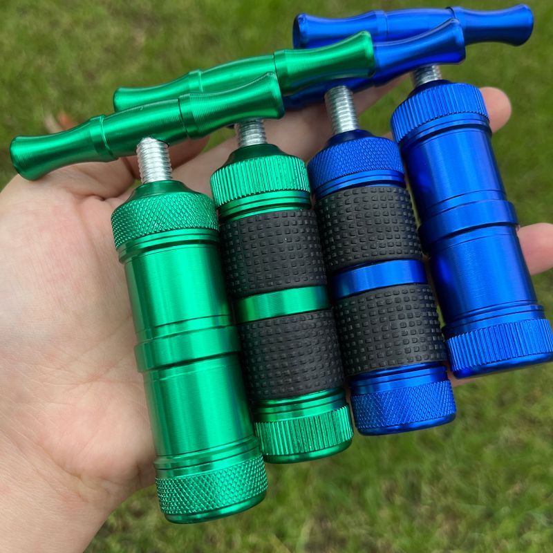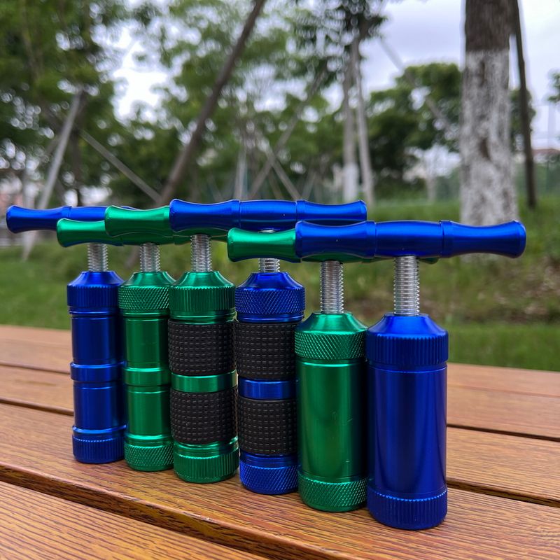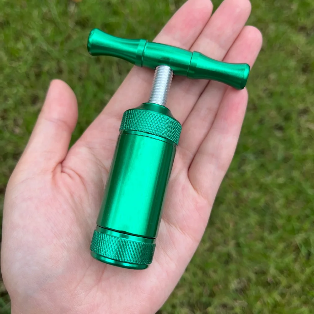 Good Green and Blue Quality 1pc Aluminum Alloy T Shape Press Tool For Spice, Garlic, Pepper, Salt, Can Be Rotated Squeezed To Store Tobacco Leaves Pocket
