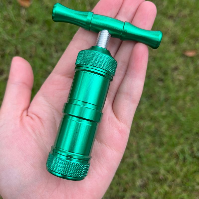 Good Green and Blue Quality 1pc Aluminum Alloy T Shape Press Tool For Spice, Garlic, Pepper, Salt, Can Be Rotated Squeezed To Store Tobacco Leaves Pocket