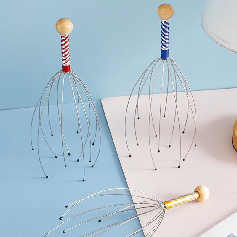1PC Octopus Head Massager Stainless Steel Engraved Head Relaxer Brain Massage Claw Scalp Scratcher Itch Reliever Random Color