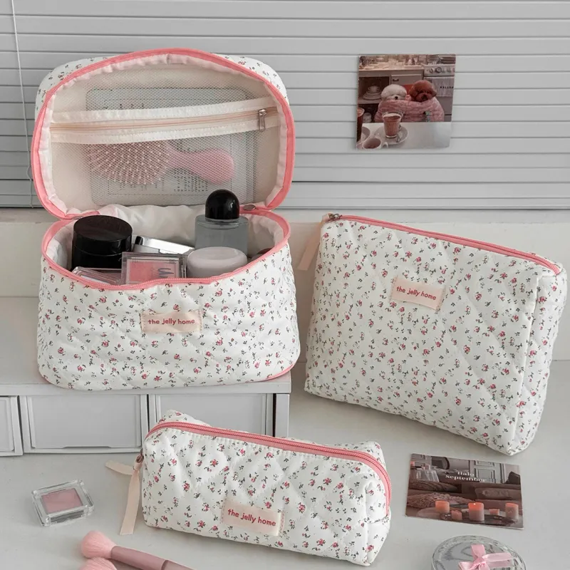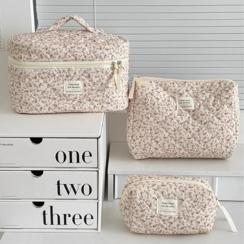 1PC Pink Strawberry Women Cosmetic Quilted Bag Portable Travel Organizer Toiletry Makeup Storage Pouch Handbag Ladies Zipper Bag