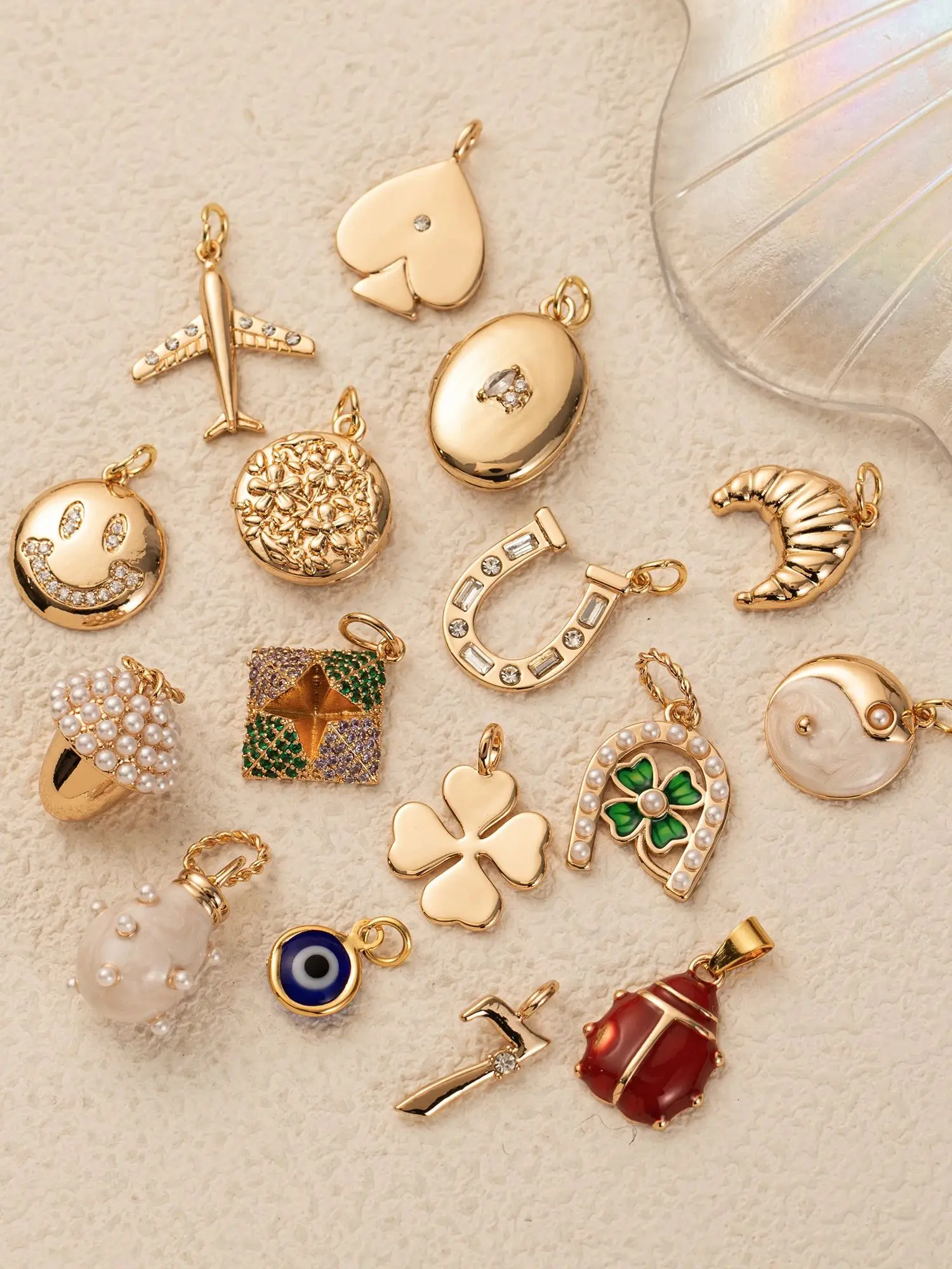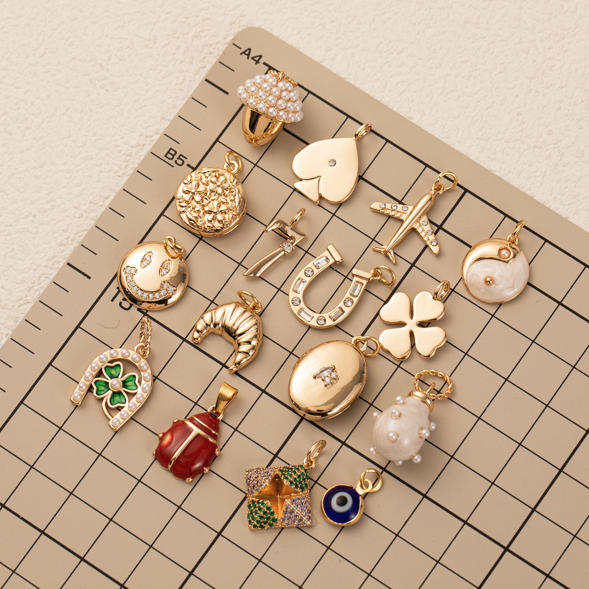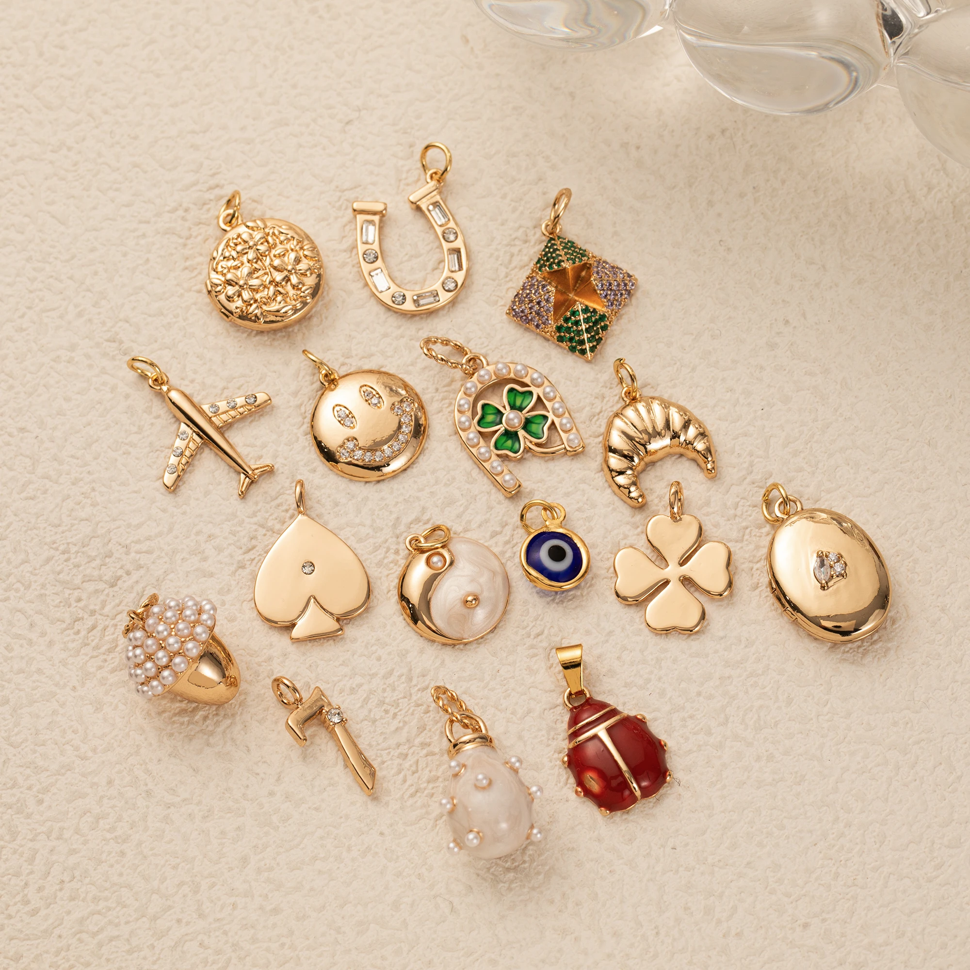 1pc plated 18K gold pendant, inlaid with synthetic zircon, DIY bracelet necklace accessories