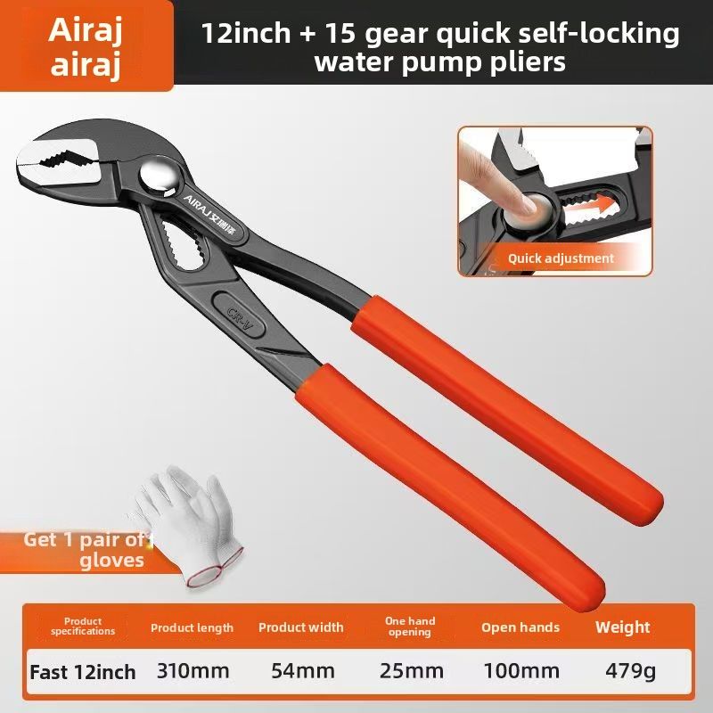 - **Quick Self-Locking Mechanism**: Our water pump pliers feature a rapid self-locking design, ensuring secure clamping and easy adjustments, perfect for household tasks and plumbing needs.