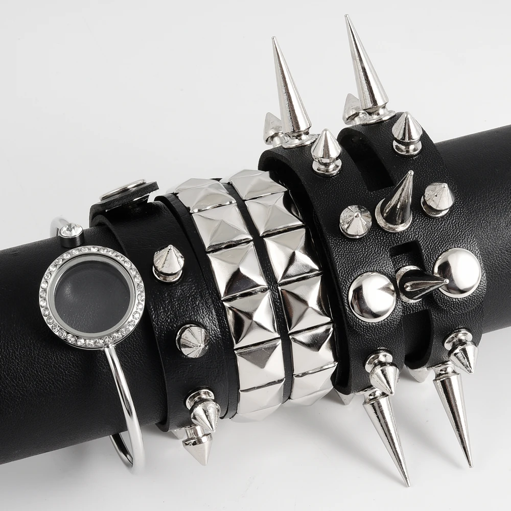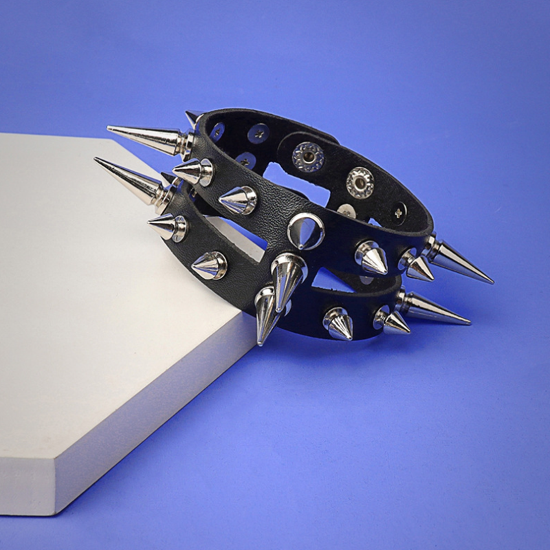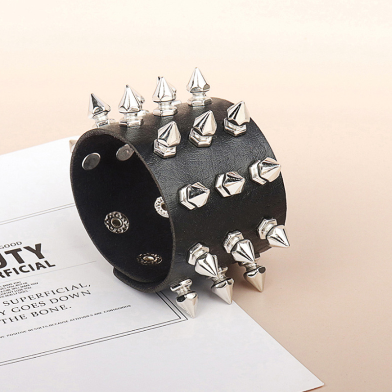 1Pc Punk Goth Rock Cuspidal Spikes Rivet Cone Stud Leather Cuff Bracelet For Men Hip Hop Women Chunky Wristband Pulseras Jewelry