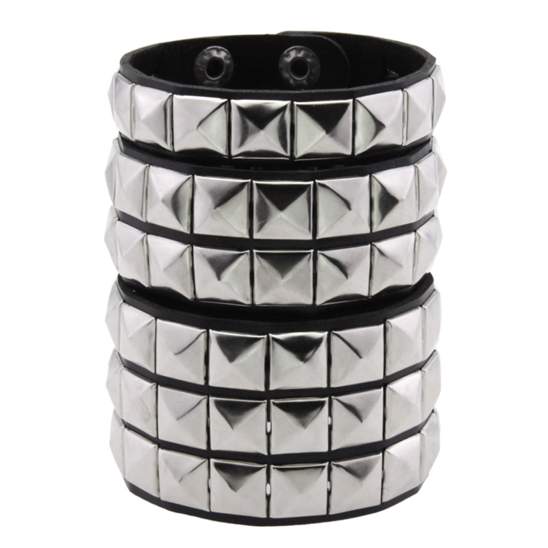 1Pc Punk Goth Rock Cuspidal Spikes Rivet Cone Stud Leather Cuff Bracelet For Men Hip Hop Women Chunky Wristband Pulseras Jewelry