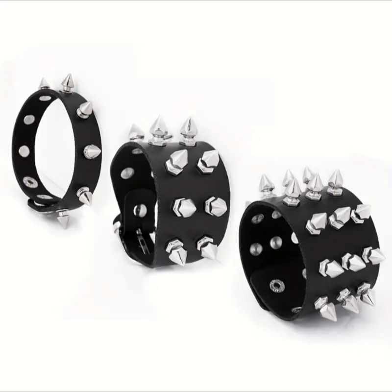 1Pc Punk Goth Rock Cuspidal Spikes Rivet Cone Stud Leather Cuff Bracelet For Men Hip Hop Women Chunky Wristband Pulseras Jewelry