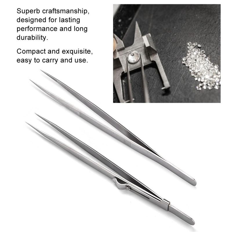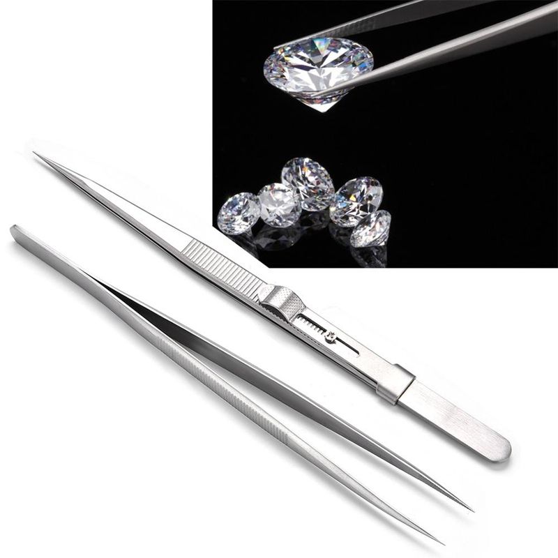 1pc Quality Stainless Steel Jewelry Tweezers with Slide Lock for Jewelry Bead Diamond Gem DIY Making Processing Tool for Jeweler