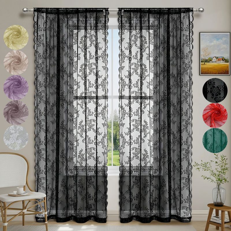 - **1pc Romantic Lace Sheer Curtain** – A single-piece, delicate lace curtain with a sheer (semi-transparent) design, offering a soft and elegant look.