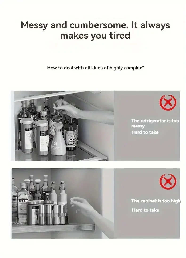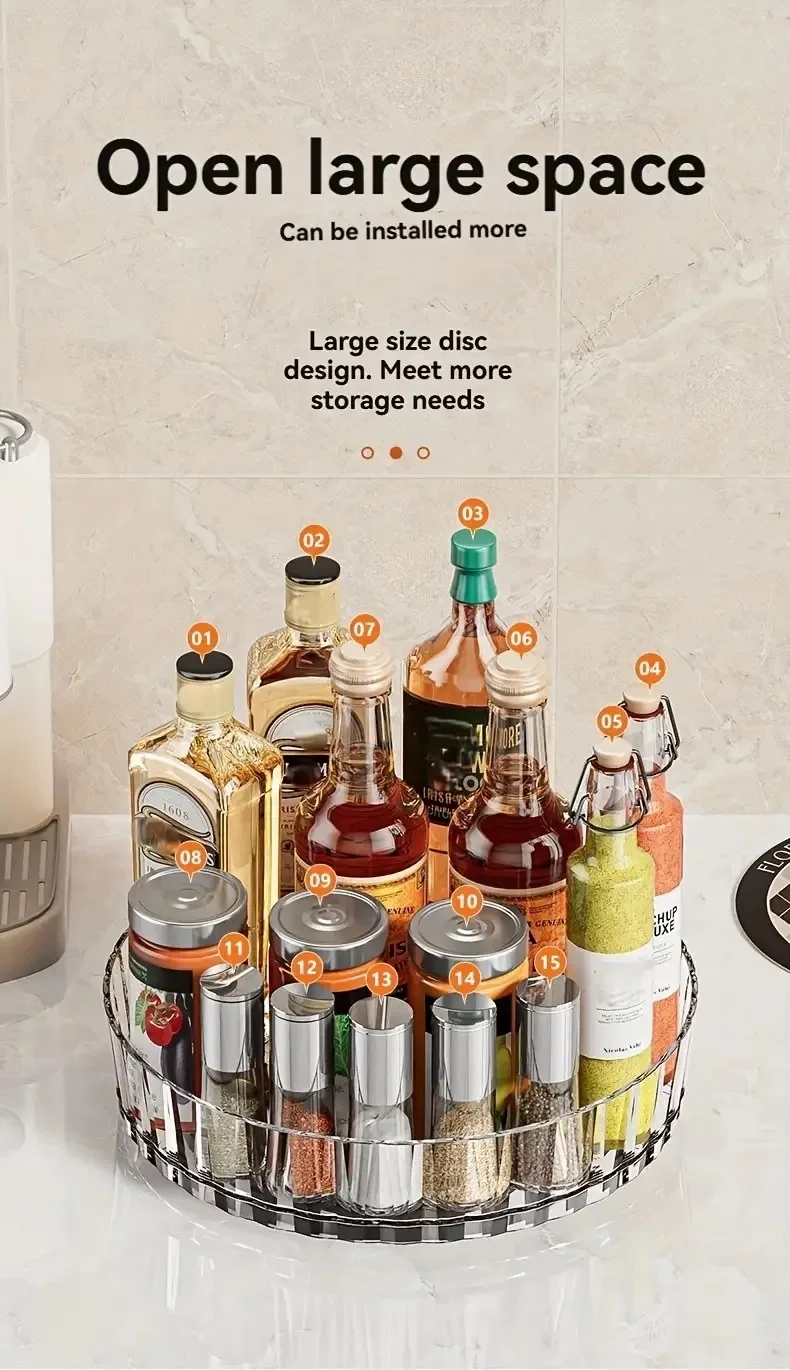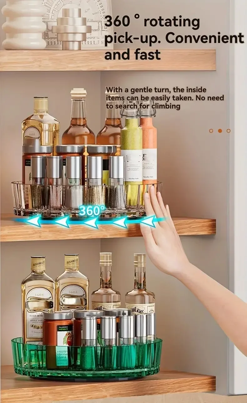 Easy sliding - Rotates 360°, the bottom is non-slip and stable, the rotation does not slip, allowing you to easily place flavoring bottles, fruits and vegetables, or cosmetics and skin care products at any Angle.