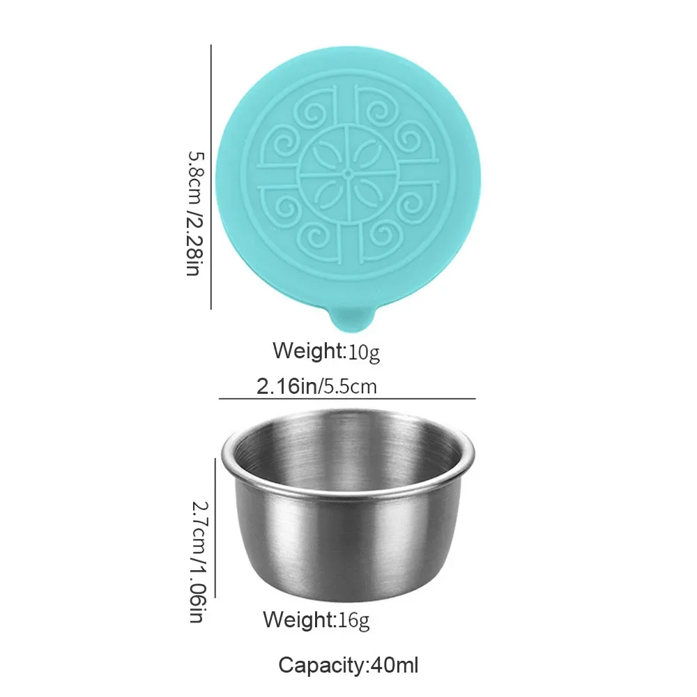 1pc Salad Dressing Container With 1.35oz/40ml Reusable Stainless Steel Cup And Leakproof Silicone Lids For Lunch Box and Picnic