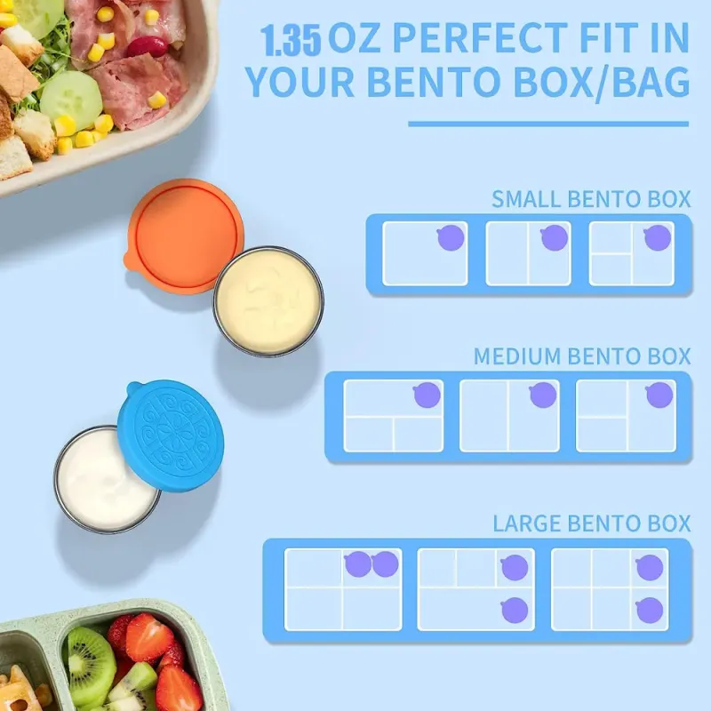 Applicable scene:These dip containers for lunches are not only perfect for salad dressing but can also be used for sauces, condiments, and dips. The lightweight and stackable design makes them easy to store and transport, and they are dishwasher and fridge safe.